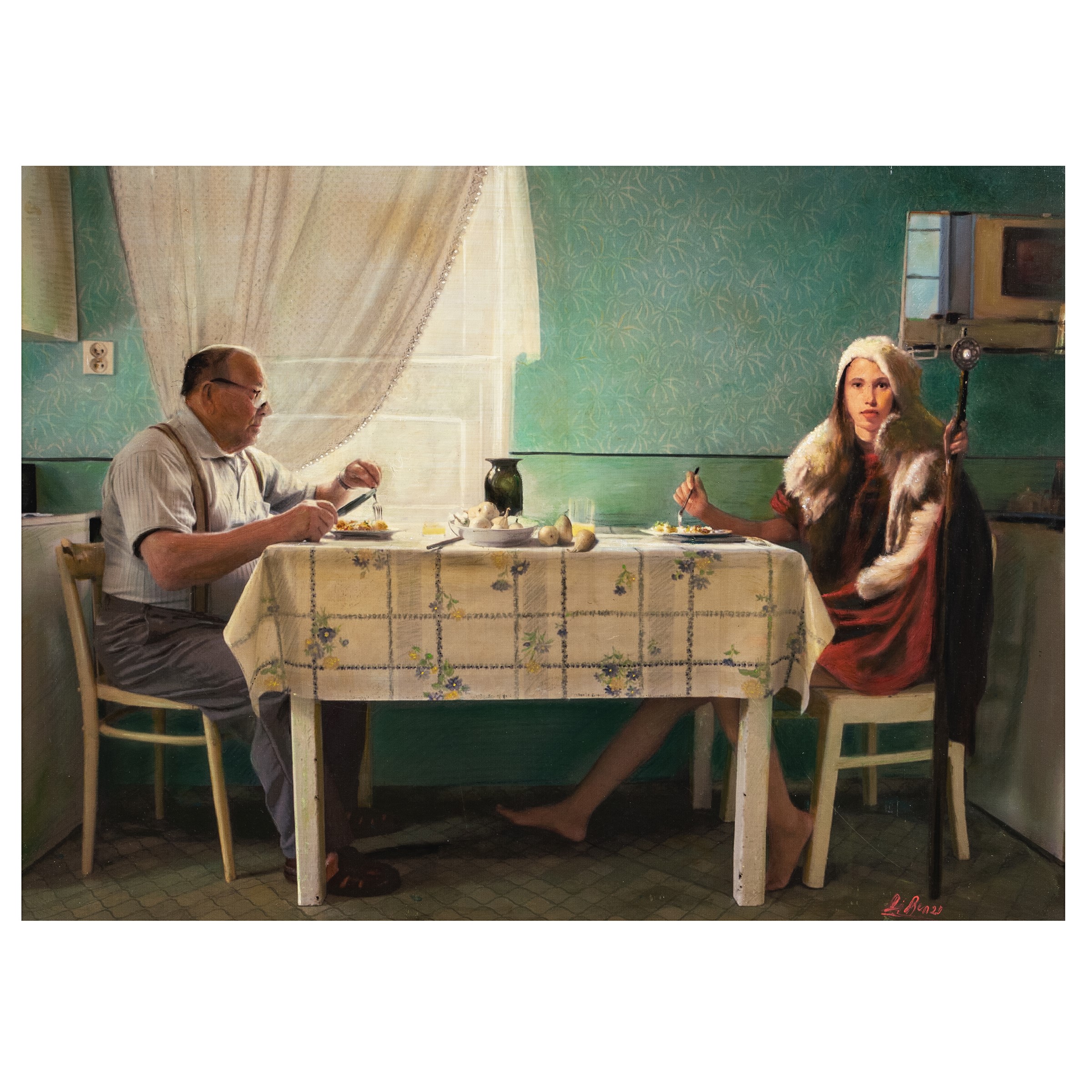 Chieti 1946 La badante ucraina, 2012, olio su tavola, firmato in basso a destra, entro cornice. Autentica dell'artista su foto