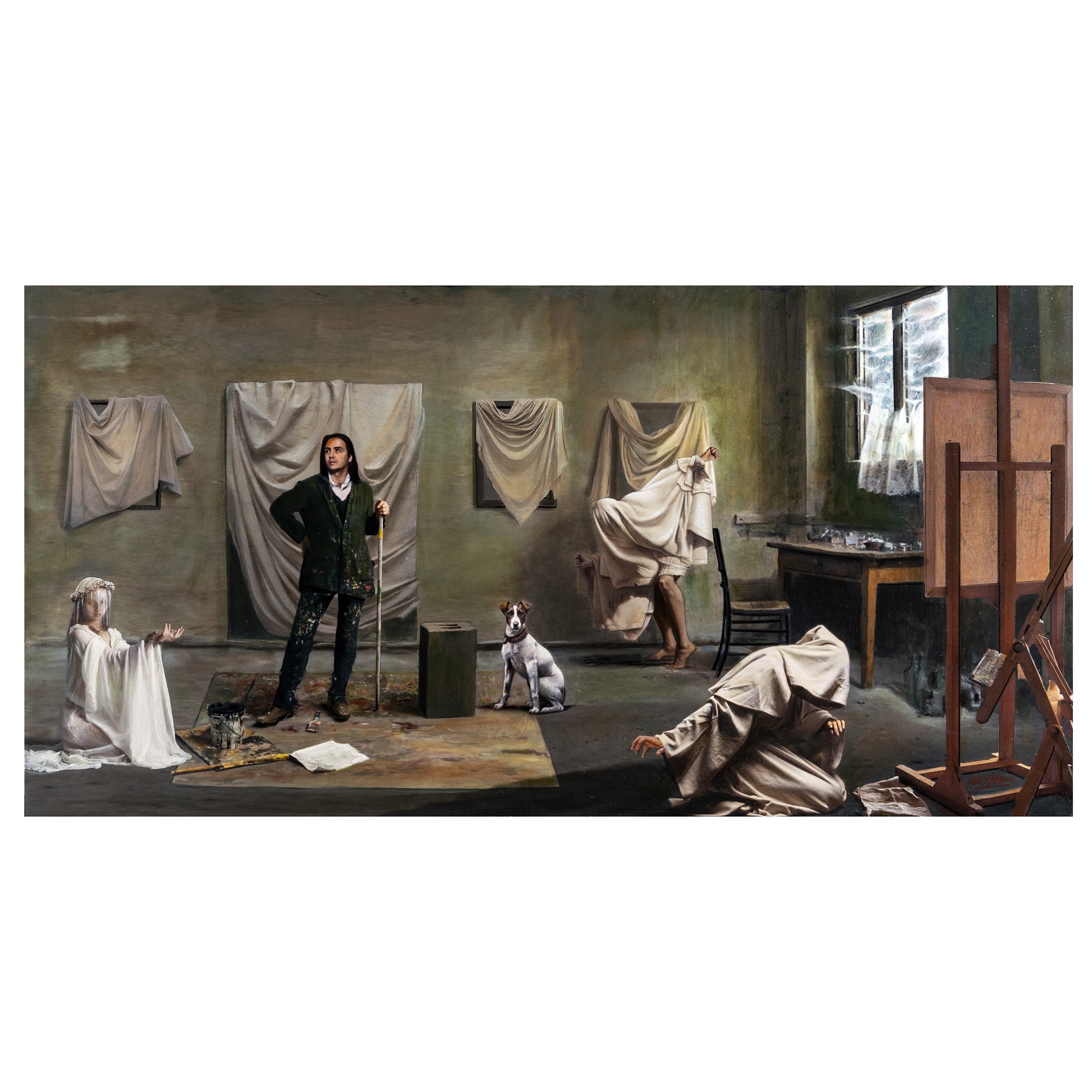 Chieti 1946 Pittore dal vivo, 2021, olio su tela, firmato in basso a destra, entro cornice. Autentica dell'artista su foto