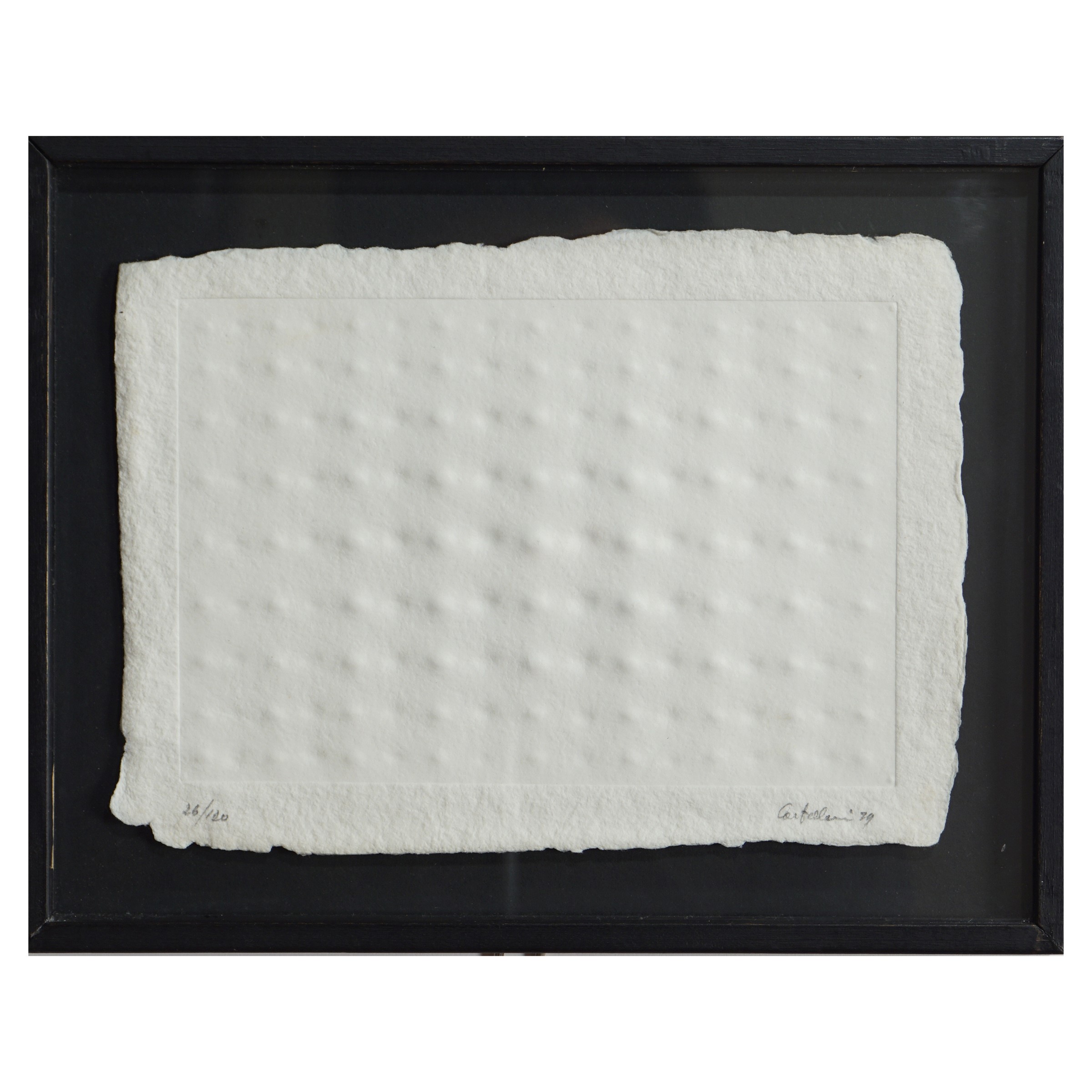 Castelmassa 1930 - Viterbo 2017 Senza titolo, 1979, impressione a secco su carta es. 26/120, firmata e datata a matita in basso a destra, Plura Edizioni, Milano, entro cornice.