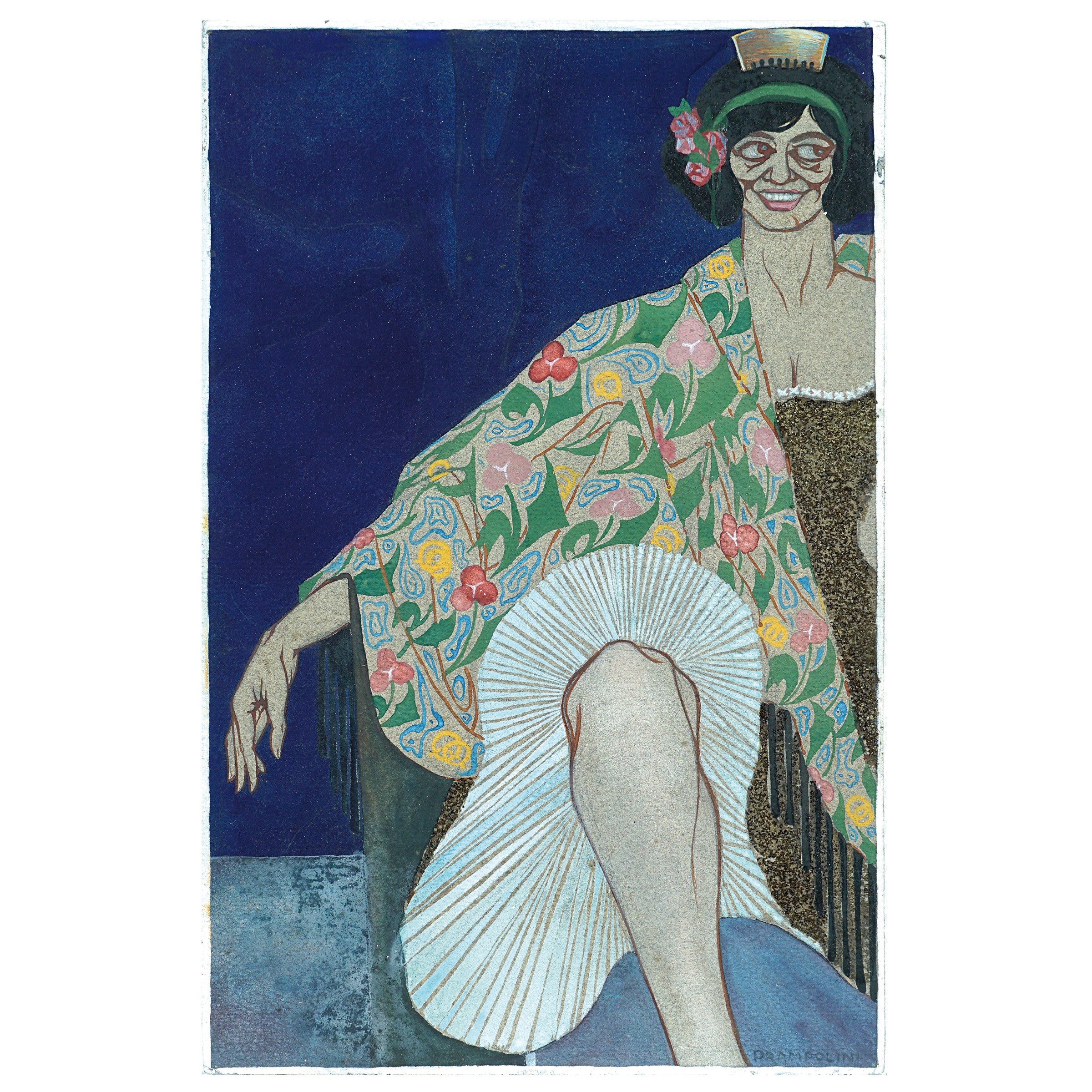 Modena 1894 - Roma 1956 Figura femminile in veste floreale, 1915 circa, tecnica mista su carta, firmato in basso a destra, entro cornice