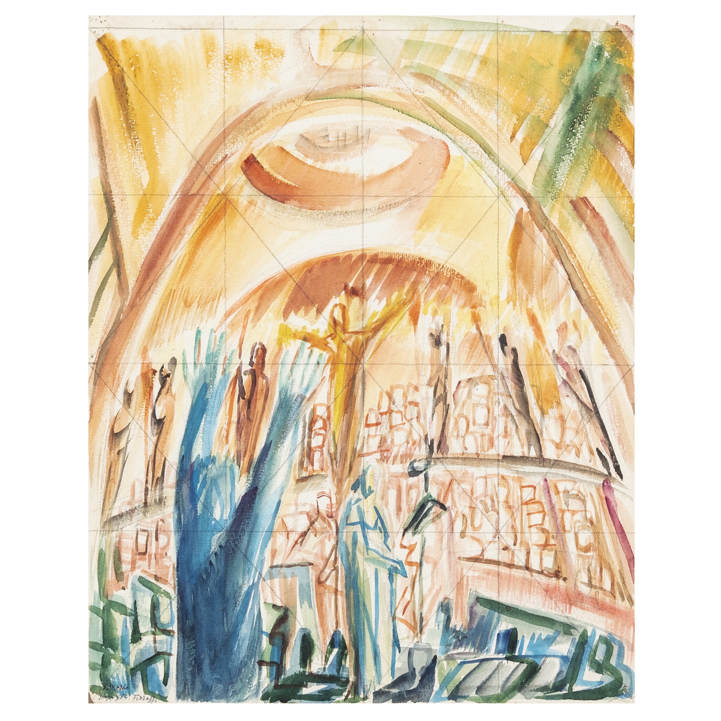 Roma 1891 - 1978 Concerto a San Marco, 1954, acquarello, firmato e datato in basso a sinistra, entro cornice