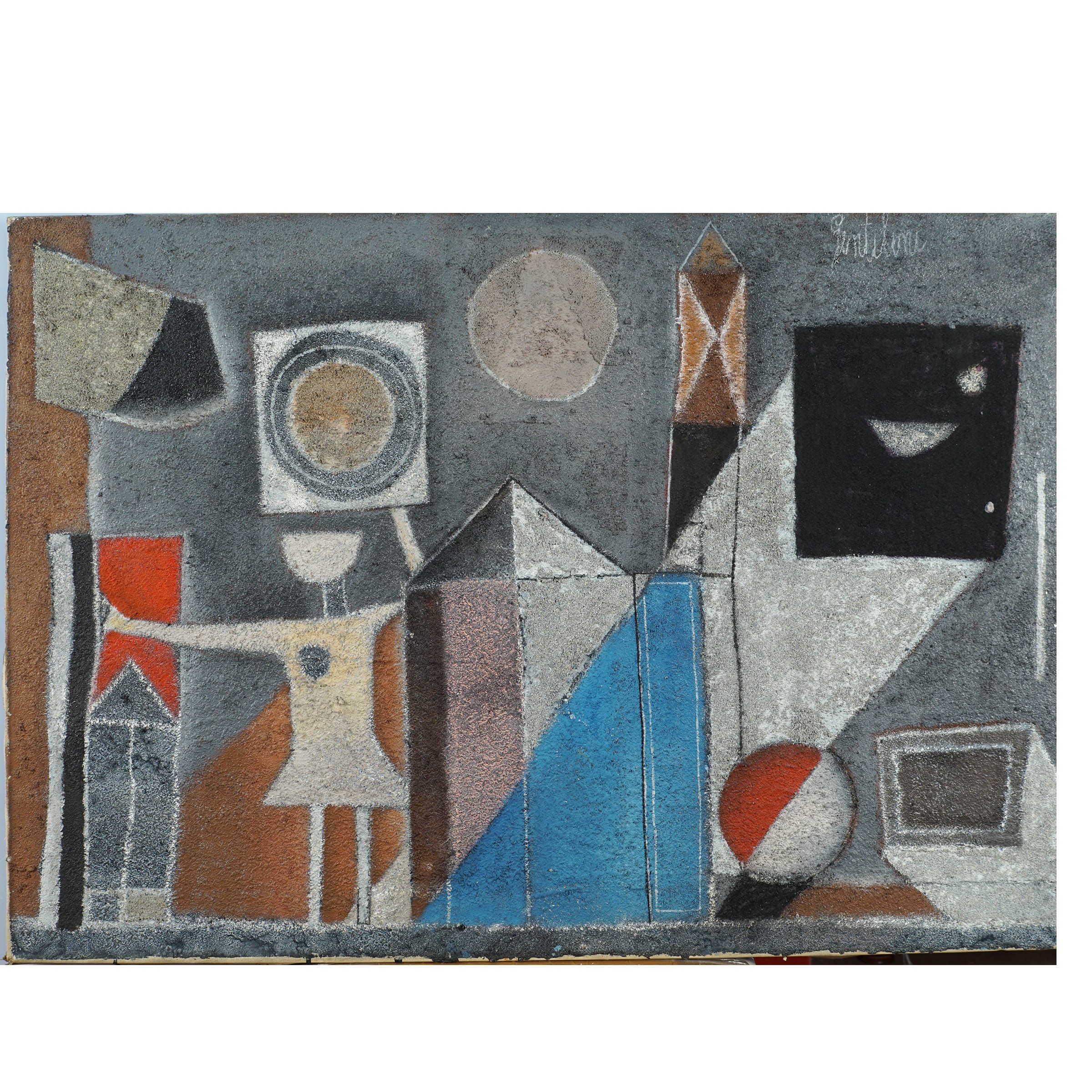 Faenza 1909 - Roma 1981 La spiaggia, 1957, olio su tela sablé, firmato in alto a destra, entro cornice