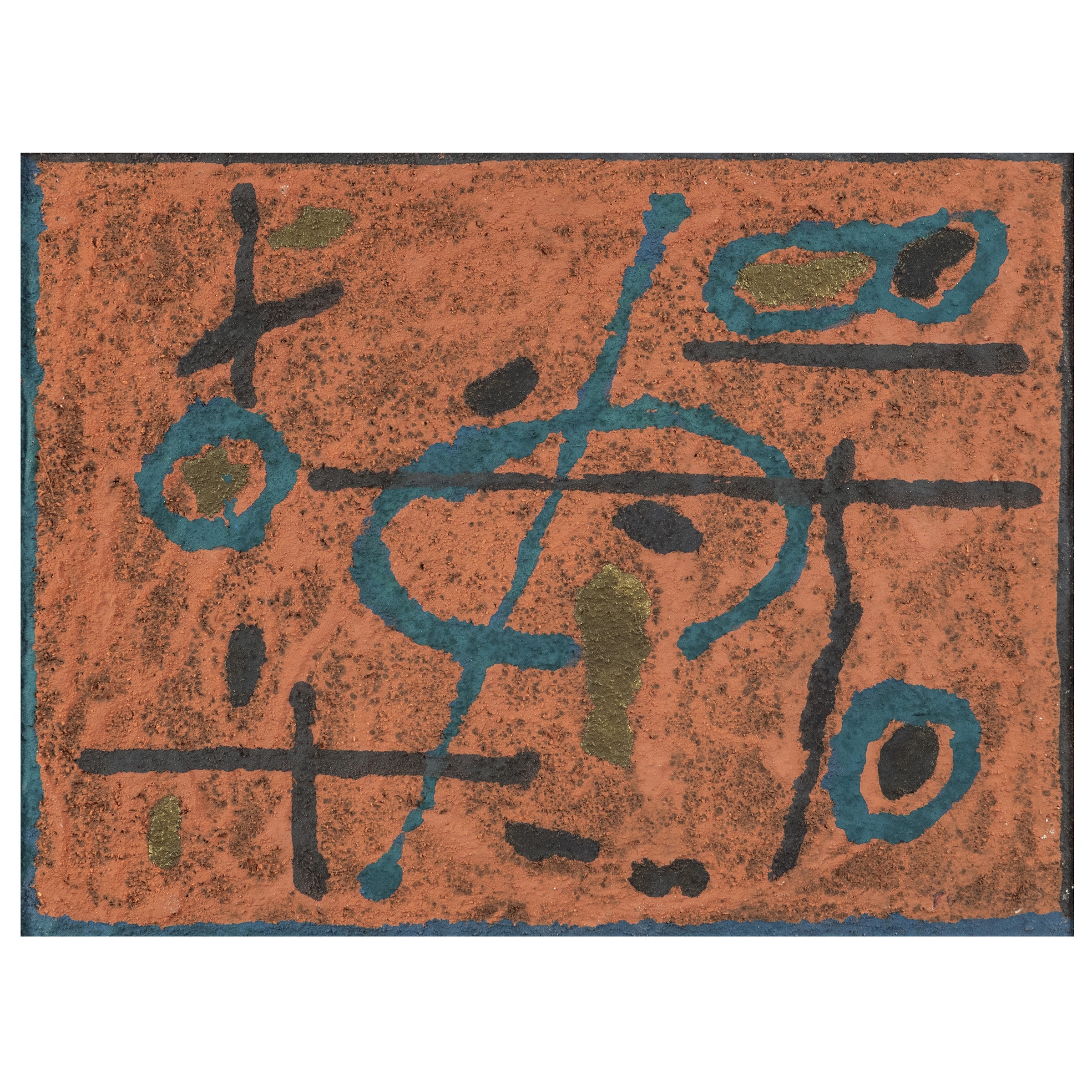 Mantova 1912 - Roma 1995 Senza titolo, tecnica mista su tela di juta, firmata in basso a destra, entro cornice