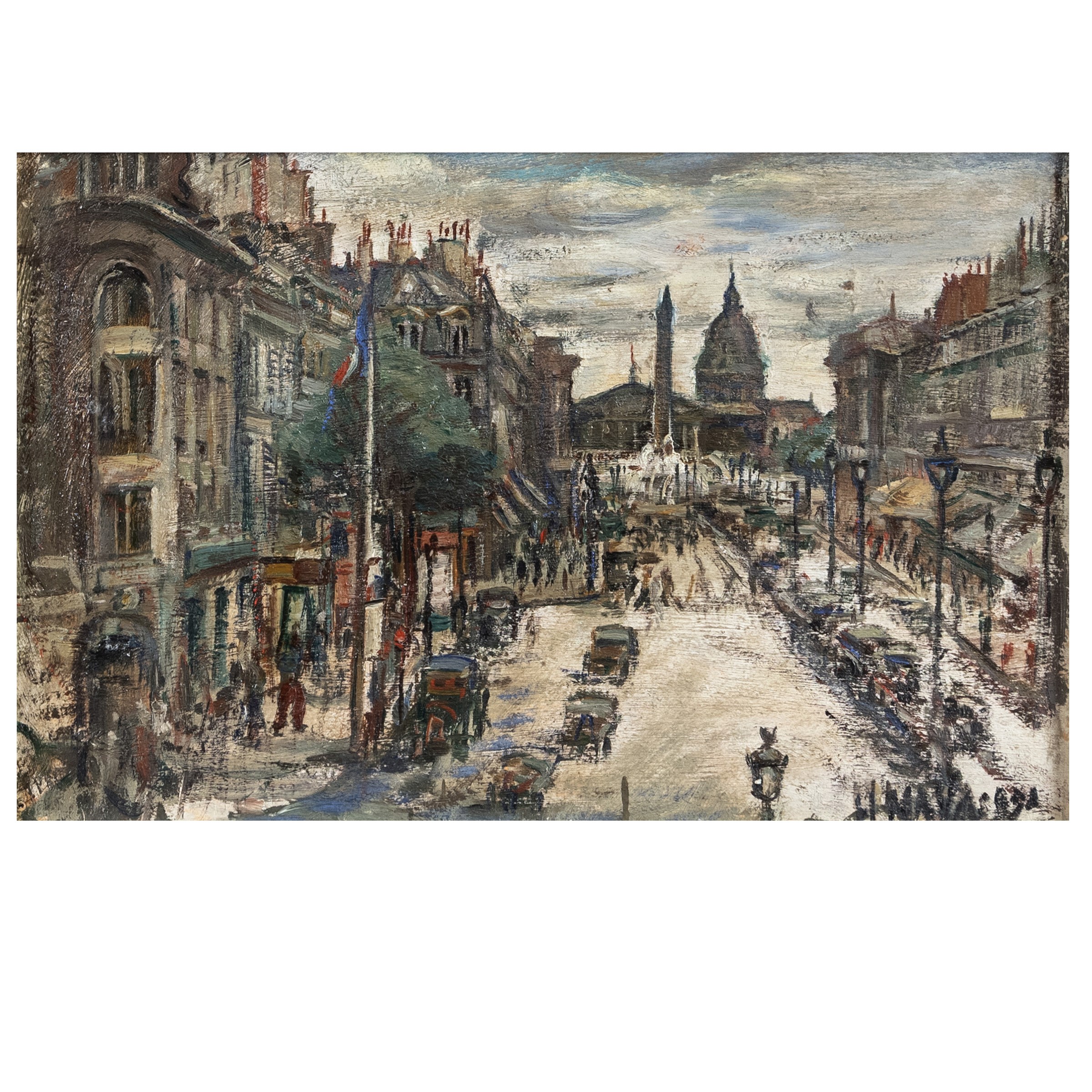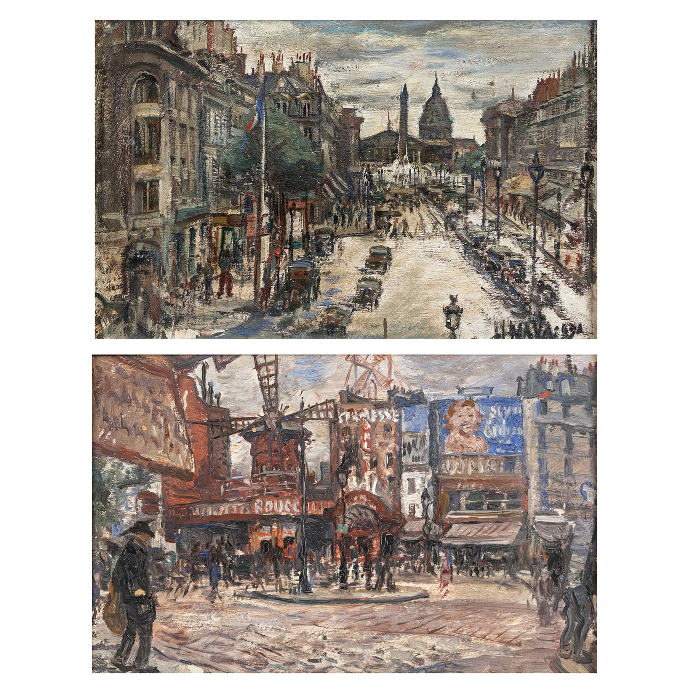 Buenos Aires 1873 - 1940 Vedute di Parigi, olio su un cartoncino telato dipinto sul fronte e sul verso, uno firmato e datato H. Nava 1891 in basso a destra, entro cornice