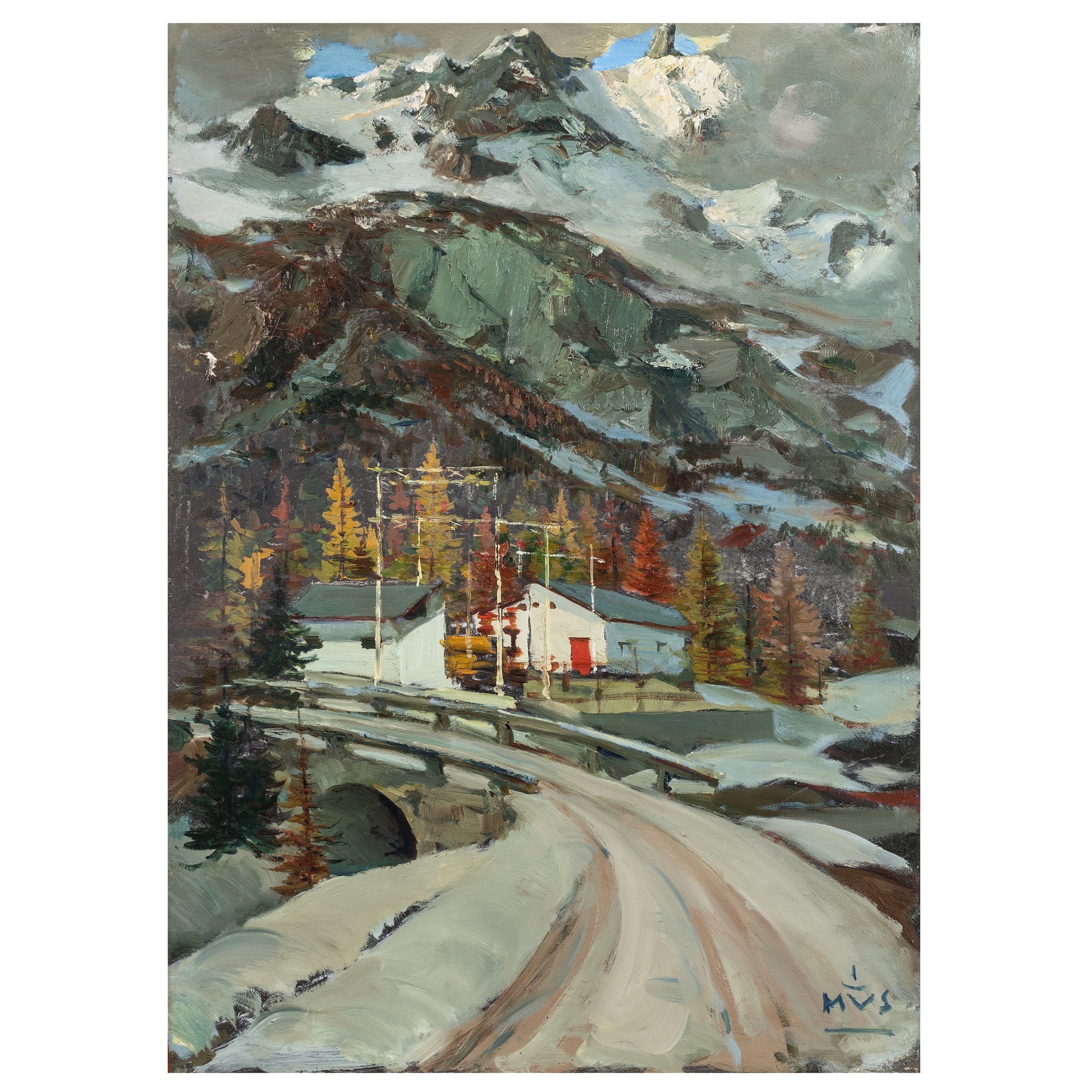 Valle D'Aosta 1892 - Saint-Vincent 1967 Cabina di Entreves, olio su tavola, firmato in basso a destra, entro cornice
