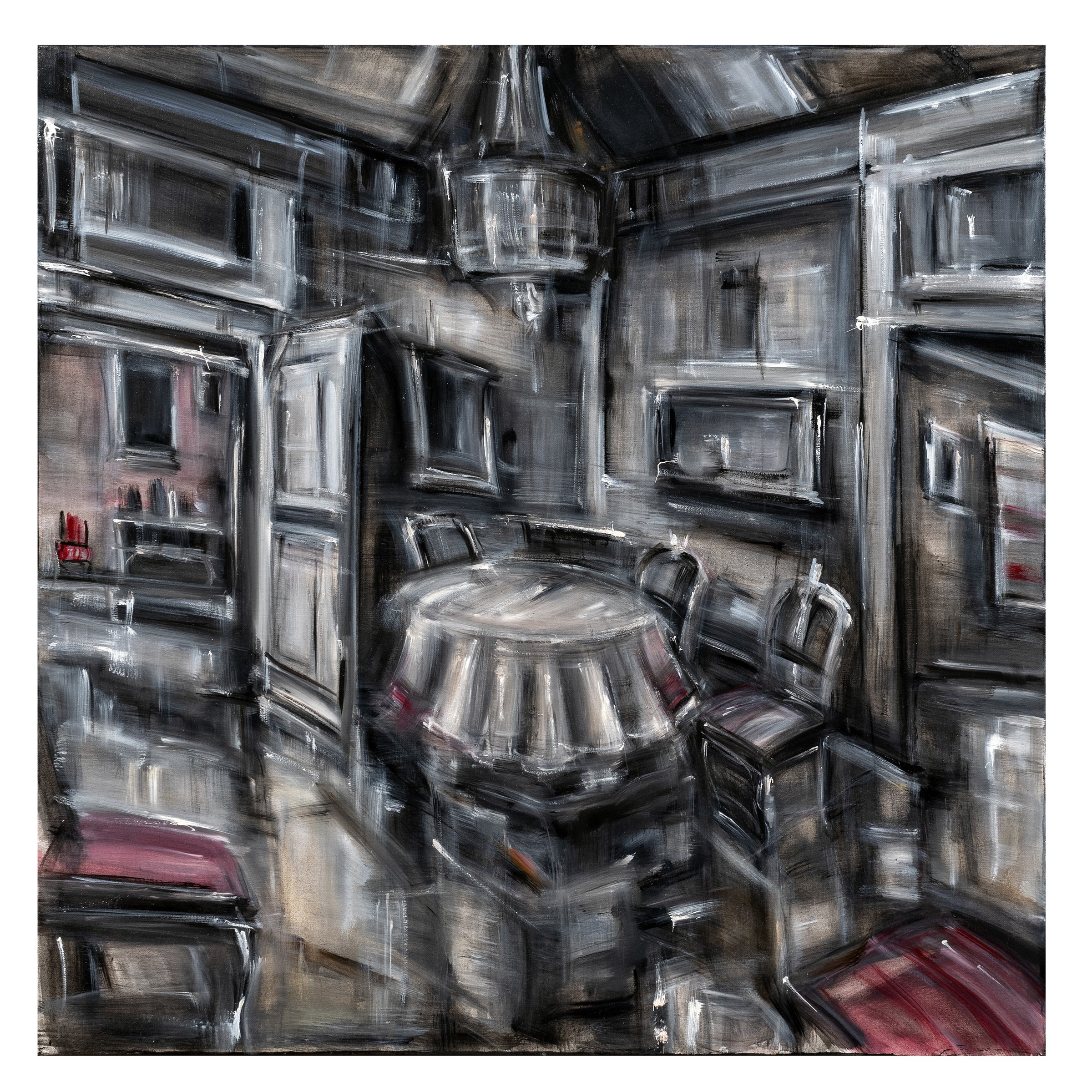 Bari 1968 Nella stanze di Andrea, l'attesa, 2013, olio su tela, firmato, datato e titolato sul retro