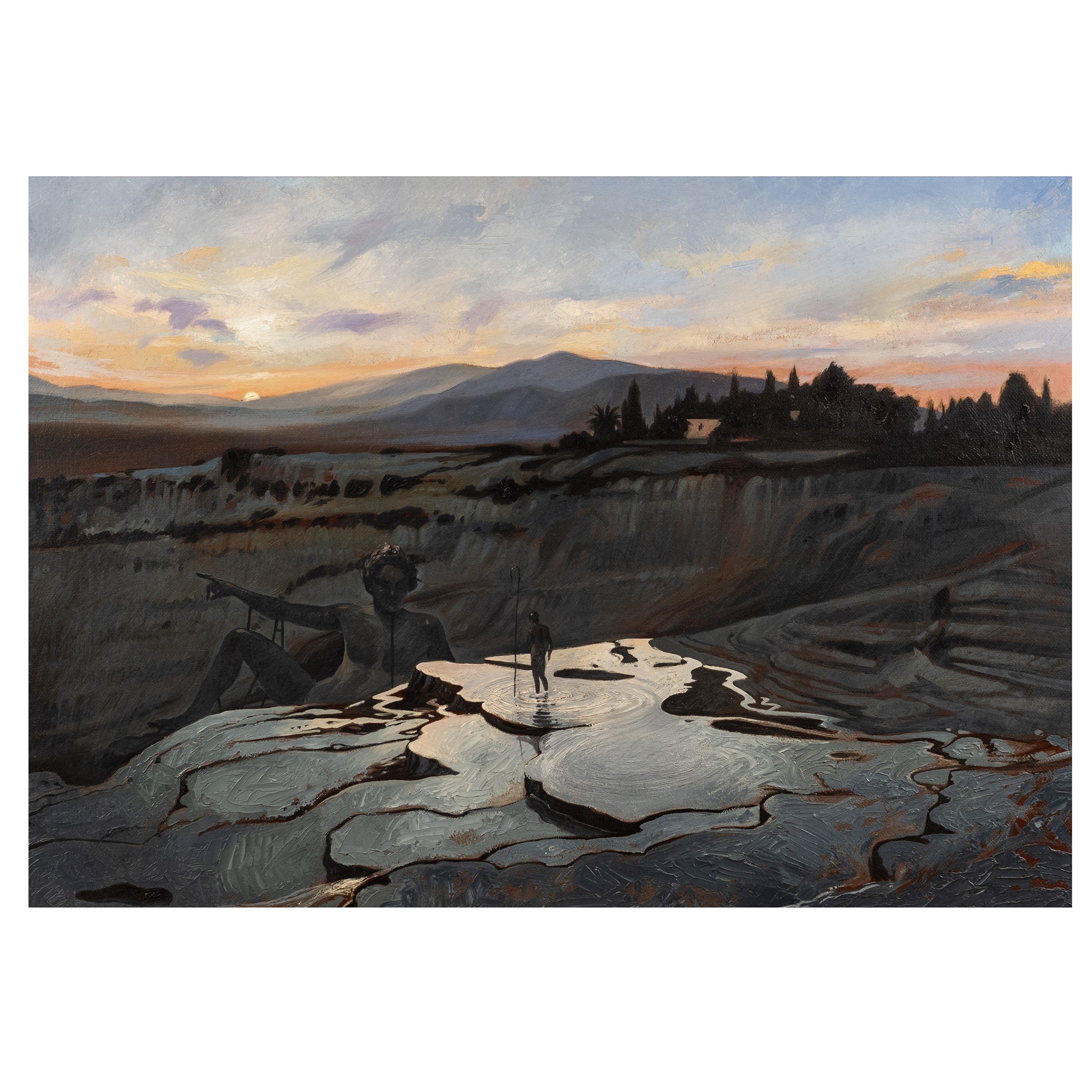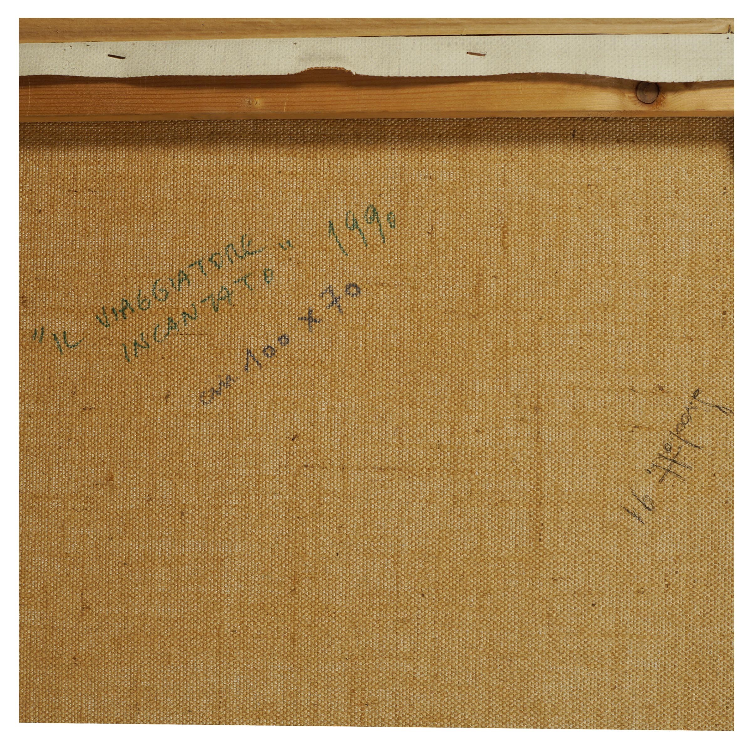 Zavia 1959 Il viaggiatore incantato, 1990, olio su tela, firmato, datato e titolato sul retro, entro cornice