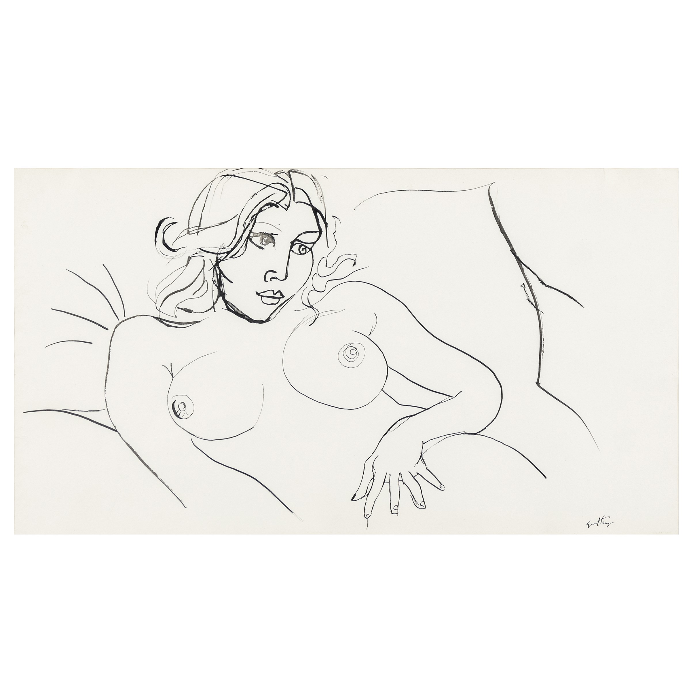 Bagheria 1911 - Roma 1987 Nudo di donna, china su carta, firmata in basso a destra, entro cornice