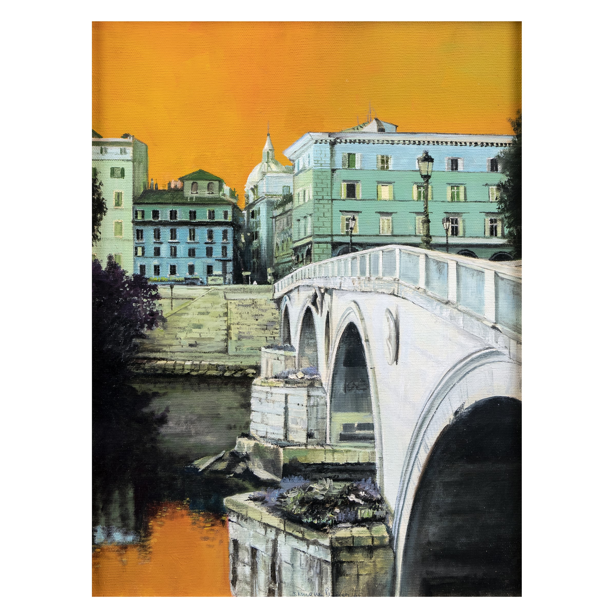 Roma 1971 Ponte Sisto, 2005, olio su tela, firmato e datato al centro, entro cornice