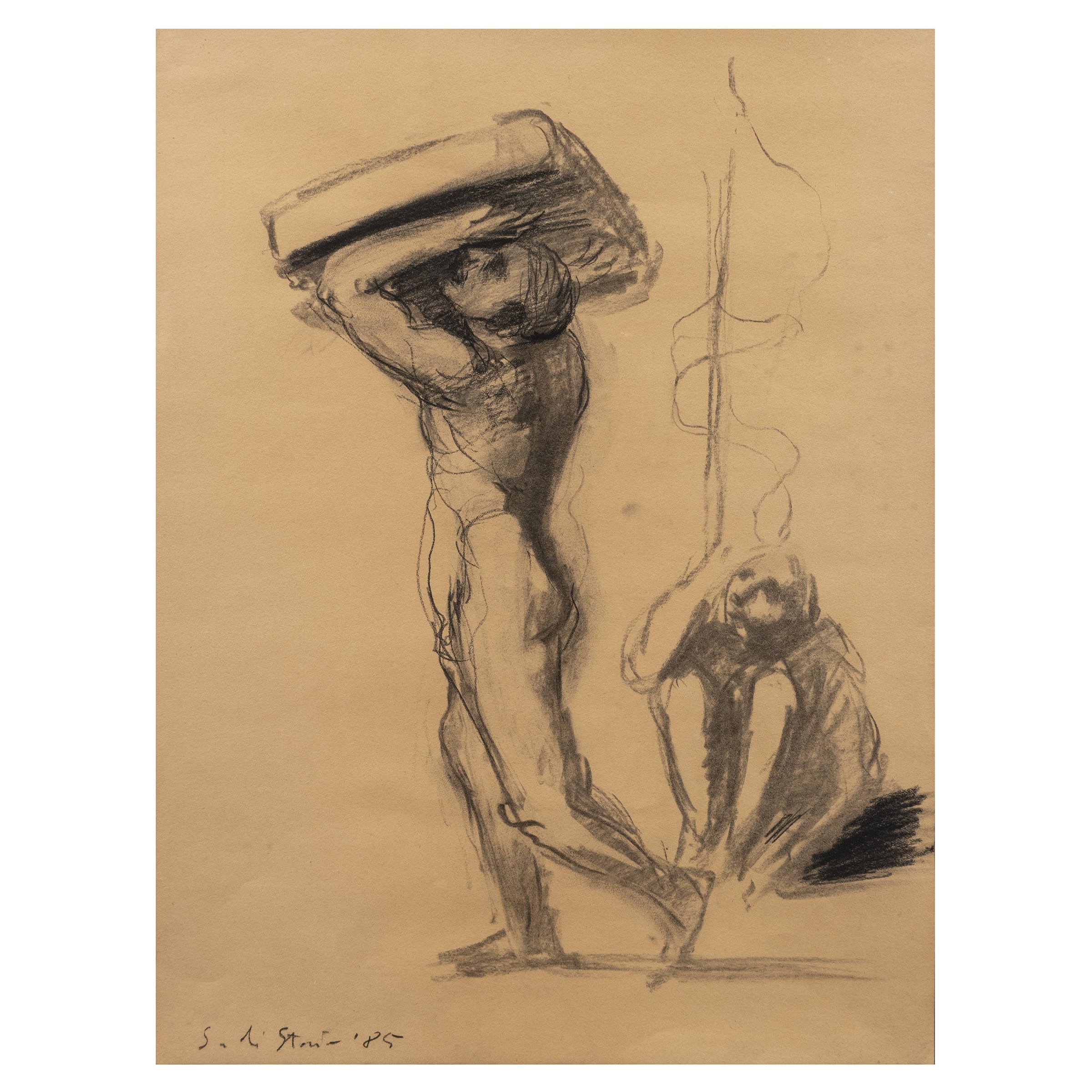 Napoli 1948 Senza titolo, 1985, carboncino su carta, firmato e datato in basso a sinistra, entro cornice