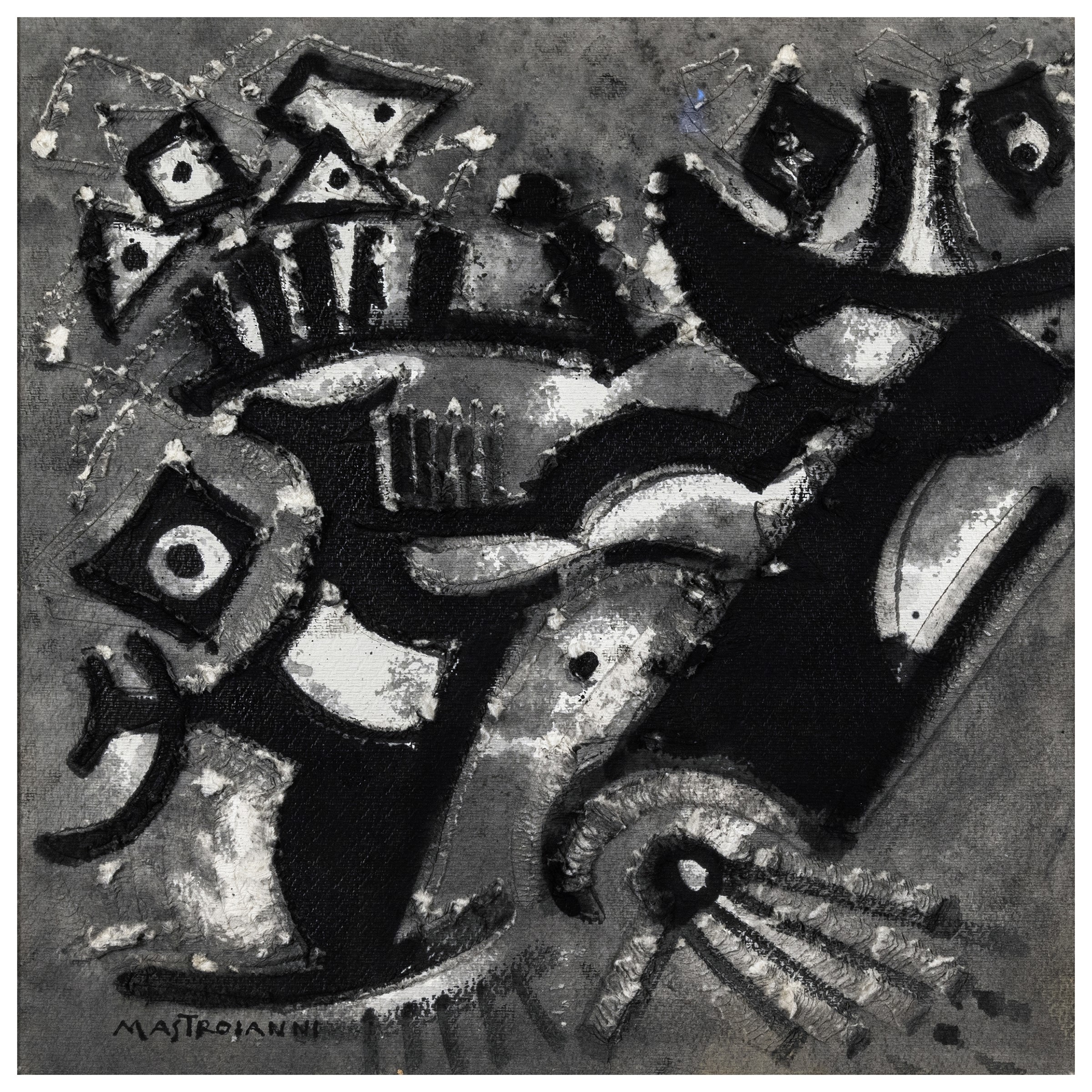Fontana Liri 1910 - Milano 1998 Senza titolo, tecnica mista su cartone, firmata in basso a sinistra, entro cornice