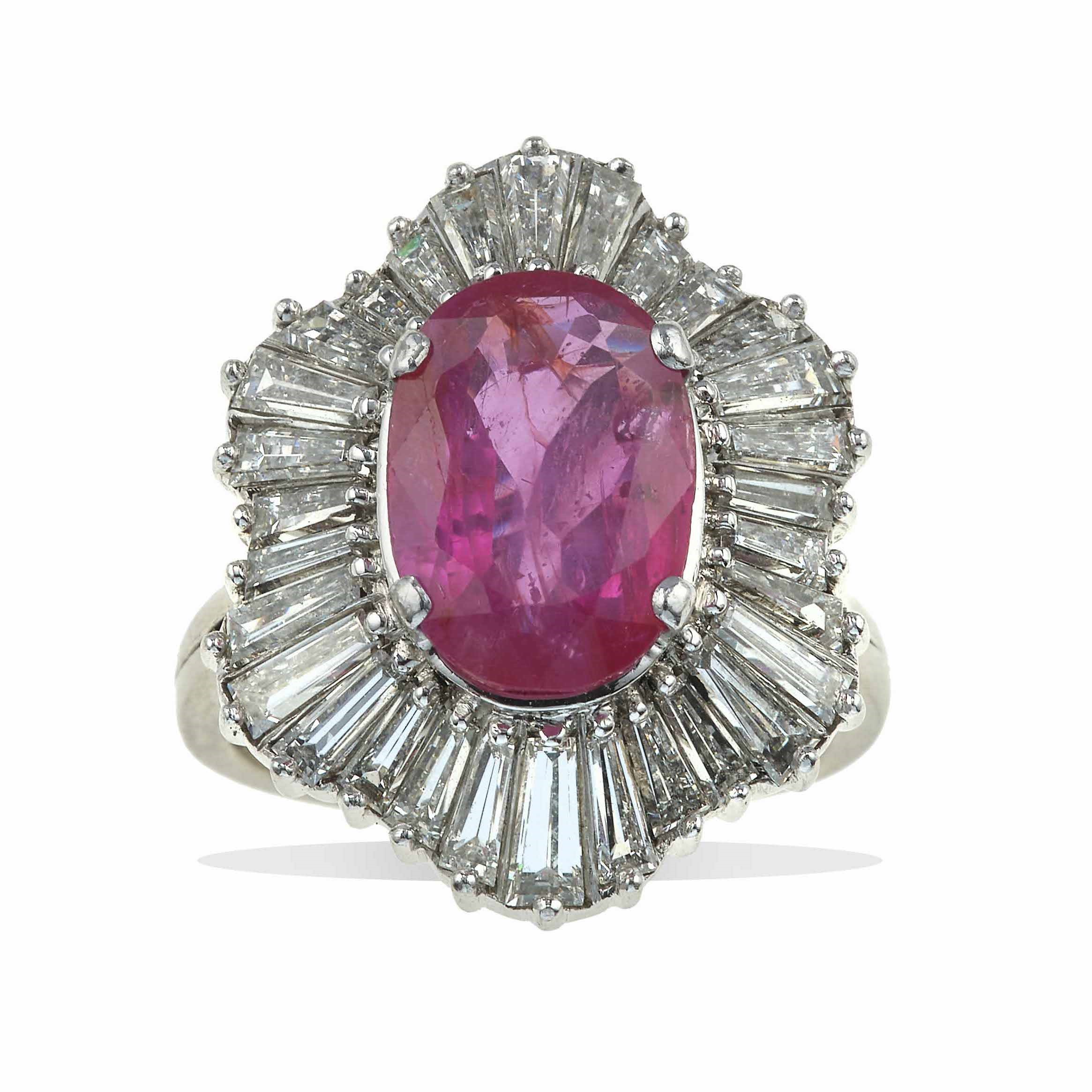 Anello con rubino Burma di ct. 5.30 e diamanti taglio tepper a contorno