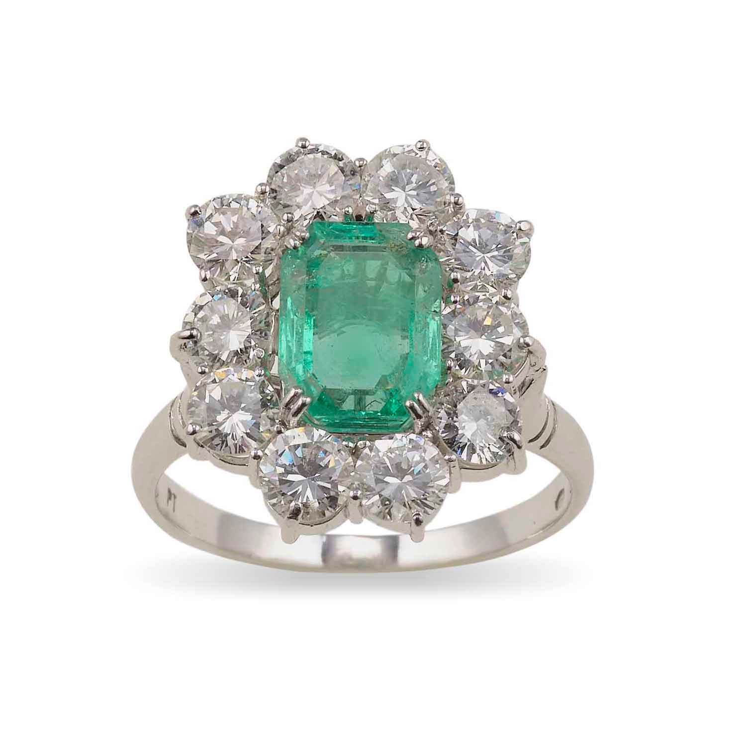 Anello con smeraldo Colombia di ct 1.40 circa e diamanti taglio a brillante per [..]