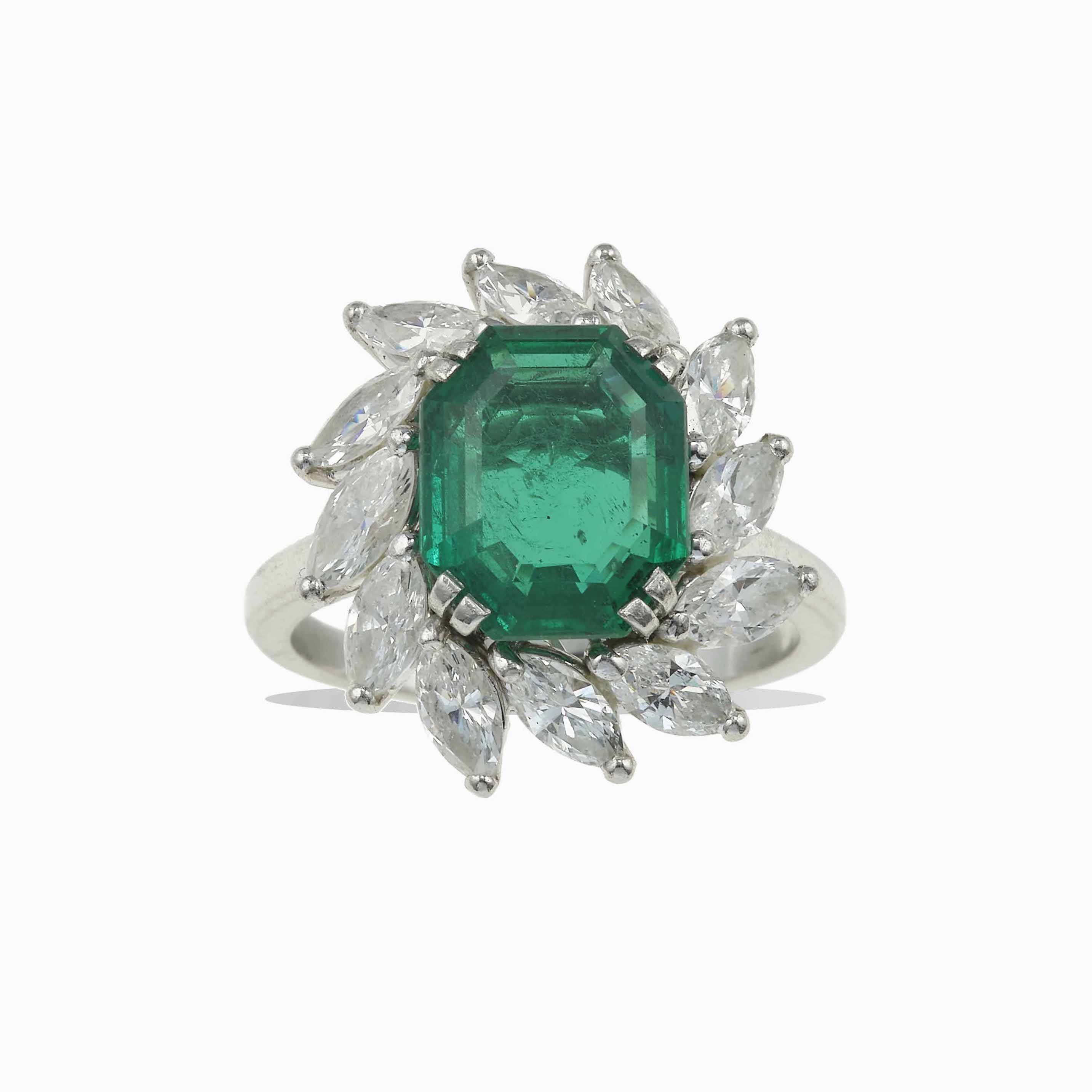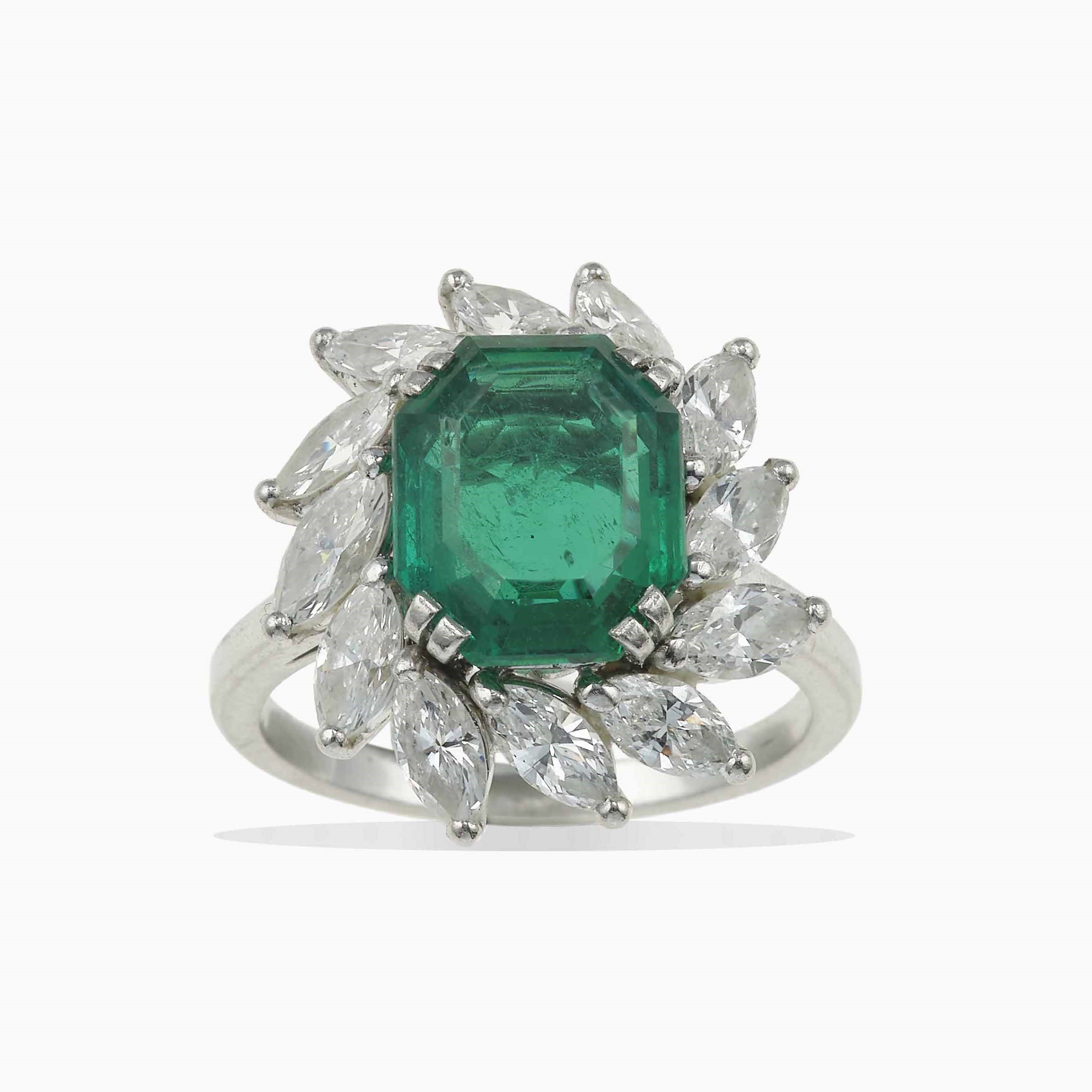 Anello smeraldo Colombia ct 4.35 e diamanti taglio navette a contorno