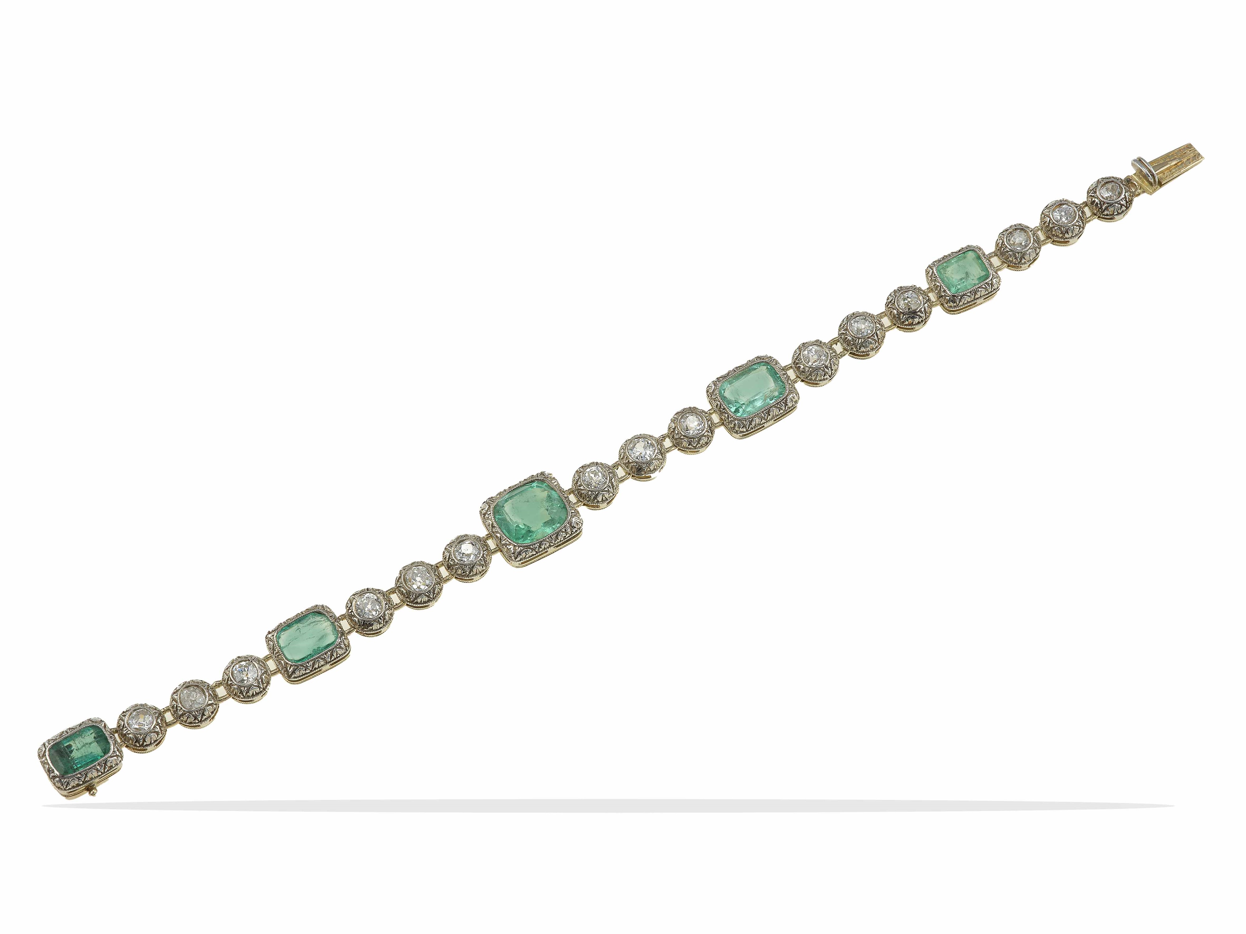 Bracciale con smeraldi e diamanti di vecchio taglio