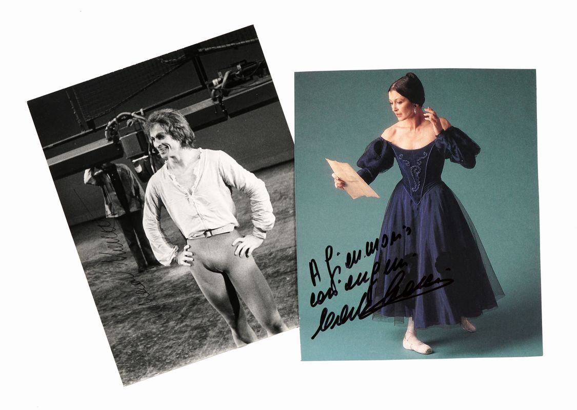 Firma a inchiostro nero. Dimensioni: 254x203 mm. SI AGGIUNGONO: 1 fotografia con dedica e firma autografa di Carla Fracci e 1 fotografia con firma autografa di Natalia Makarova.