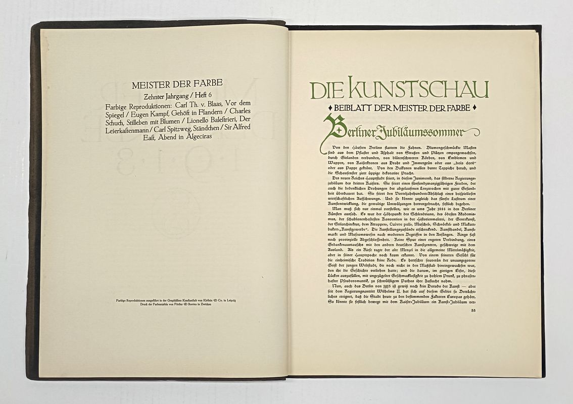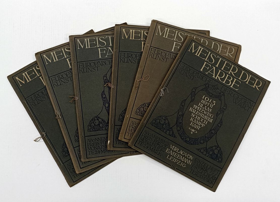 36 fascicoli in-folio (mm 360x275). 3 annate complete, ognuna composta da 12 fascicoli numerati. Sono presenti i seguenti anni: anno X (1913); anno XI (1914); anno XIII (1916). Con numerose tavole a colori fuori testo e illustrazioni nel testo. Brossura editoriale figurata in bianco e nero cucita con laccetti. SI AGGIUNGONO: Meister der Farbe. 5 fascicoli in-folio. Anno IX (1912) n. 4; anno XII (1915) n. 1, 2, 11, 12.
