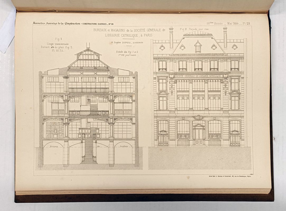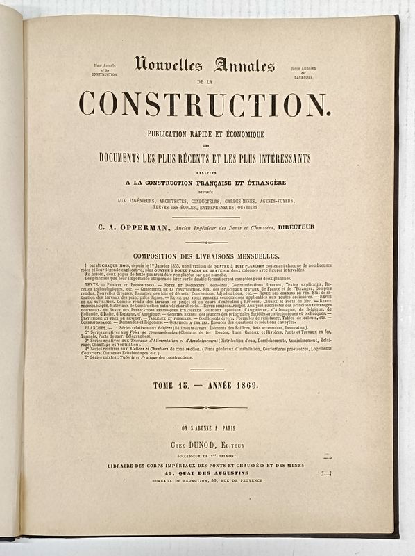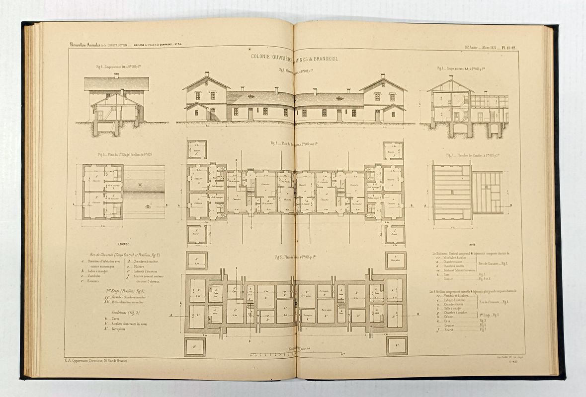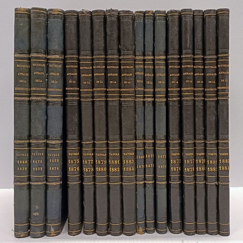 16 volumi in-folio (mm 370x270). 8 volumi di testo e 8 volumi di tavole. Dal Tomo XV (1869) al Tomo I, 4° serie (1884). Con 877 tavole in bianco e nero, di cui molte a doppia pagina. Carte uniformemente brunite. Legatura coeva in mezza pelle con dorsi a 4 nervi decorati in oro. Mancanze alle cuffie di alcuni volumi.