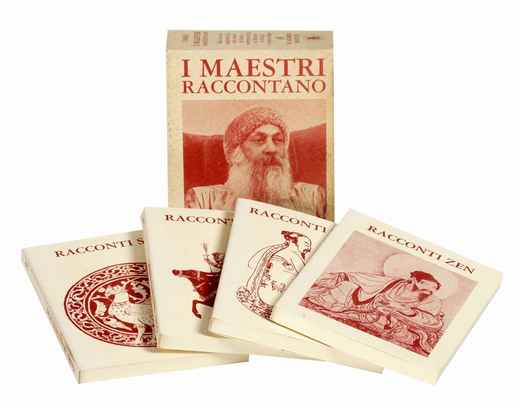 4 volumetti (mm 90x68). La collana contiene: Racconti Sufi; Racconti Taoisti; Racconti Zen; Racconti Hindu. Tutti in brossura editoriale in pieno cartonato illustrato; entro cofanetto originale in cartonato, illustrato ai piatti.