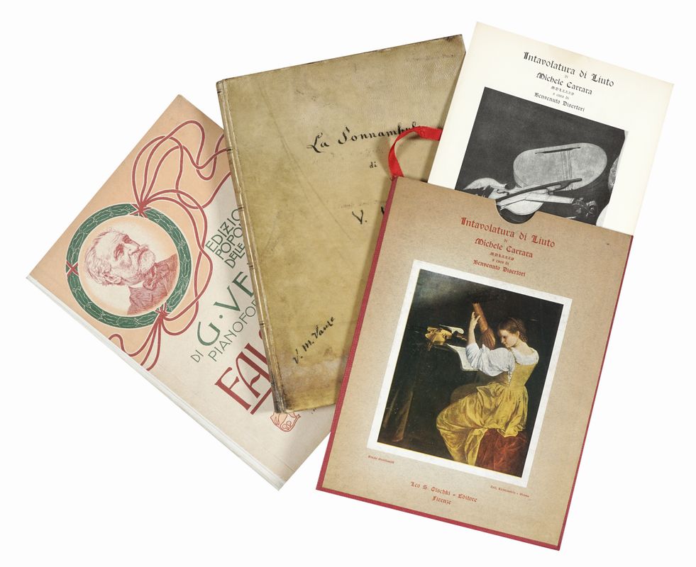 La raccolta comprende: Bellini, La Sonnambula (spartito per canto e piano con annotazioni di Vittorio Maria Vanzo) – J. Des Prez “Missarum liber secundus” (facsimile dell’edizione veneziana del 1505) – C. De Rore, Il primo libro delle fiamme vaghi e dilettevoli madrigali (fascimile dell’edizione Venezia Scotto 1579. 5 voll.) - “Intavolatura di liuto di Michele Carrara (a cura di Benvenuto Disertori) – Franchetti, La figlia di Iorio (spartito per canto e piano. Milano, Ricordi 1906) - Verdi, Falstaff (spartito per pianoforte. Milano Ricordi 1925) – Verdi, Otello (spartito per canto e piano. Milano, Ricordi 2006) – Verdi, Nabucodonosor (spartito per canto e piano. Ricordi – The University Chicago Press ristampa 2007) – Bach. The passion of our Lord according to S. Matthew (vocal score. New York, Kalmus s.a.) – Haydn, Die Welt auf dem Monde (Vocal score. Kassel, Baerenreiter 1976) – Dnizetti, L’elisir d’amore (spartito per canto e pianoforte. Milano, Ricordi 1944) - Milano Ricordi Rossini, Il barbiere di Siviglia (spartito per pianoforte. Milano Ricordi). SI AGGIUNGONO: 8 libretti d’opera del Teatro La Fenice di Venezia.