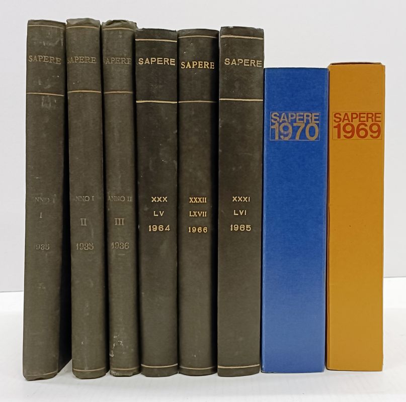 30 annate rilegate in 36 volumi in-folio (mm 315x240) + 3 annate in fascicoli sciolti in-4° (mm 278x216) e in-folio (mm 315x240). Presenti tutte le annate dal 1935 al 1970 ad eccezione degli anni 1957-59. Con moltissime illustrazioni nel testo. Legatura in mezza tela con punte e piatti in carta marmorizzata, eccetto le annate 1967, 1968, 1970 conservate nella loro brossura editoriale illustrata. Delle annate 1969 e 1970 è inoltre presente la custodia protettiva in cartone.