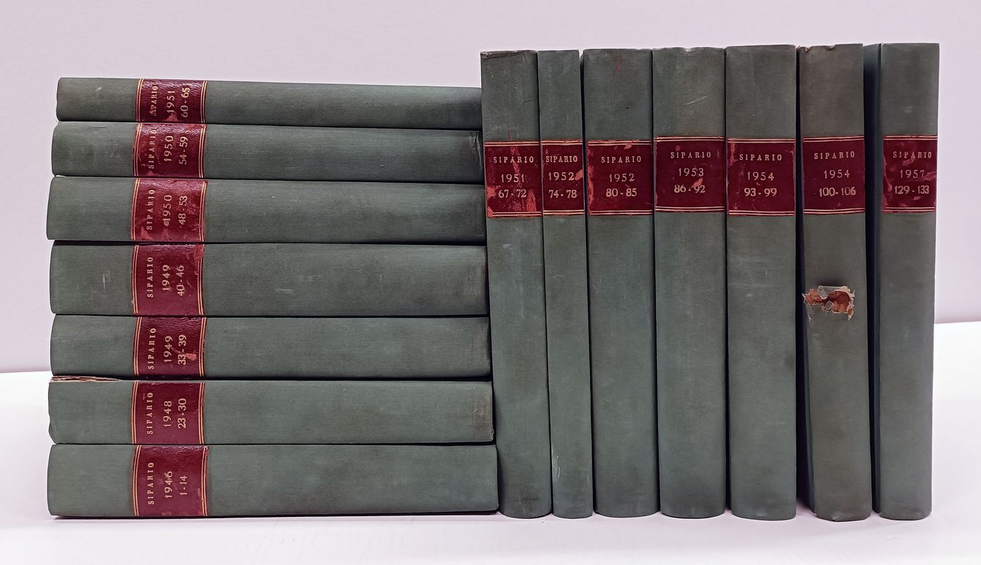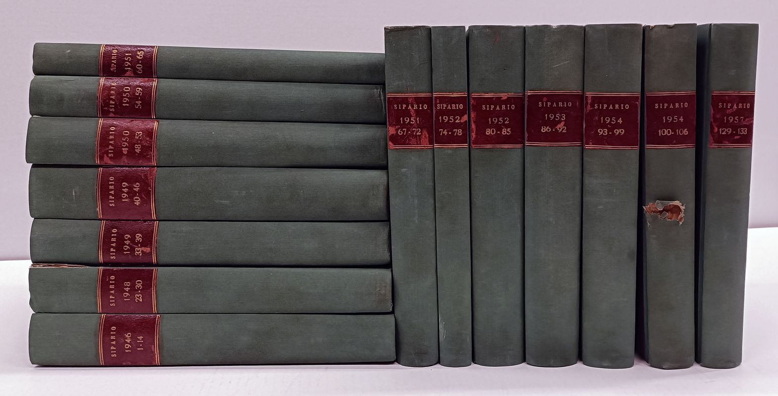97 fascicoli rilegati in 14 volumi in-4° (mm 279x200). Dal n. 1 al n. 133, ad eccezione dei seguenti numeri, assenti: n. 15-22, n. 31-32, n. 47, n. 66, n. 73, n. 79, n. 107-128. Con numerose illustrazioni in bianco e nero nel testo. Legatura moderna in piena tela verde con titoli in oro su tassello in pelle al dorso. Brossure editoriali illustrate di ciascun numero conservate all'interno. Mancanze ai dorsi e alle cerniere di alcuni volumi.