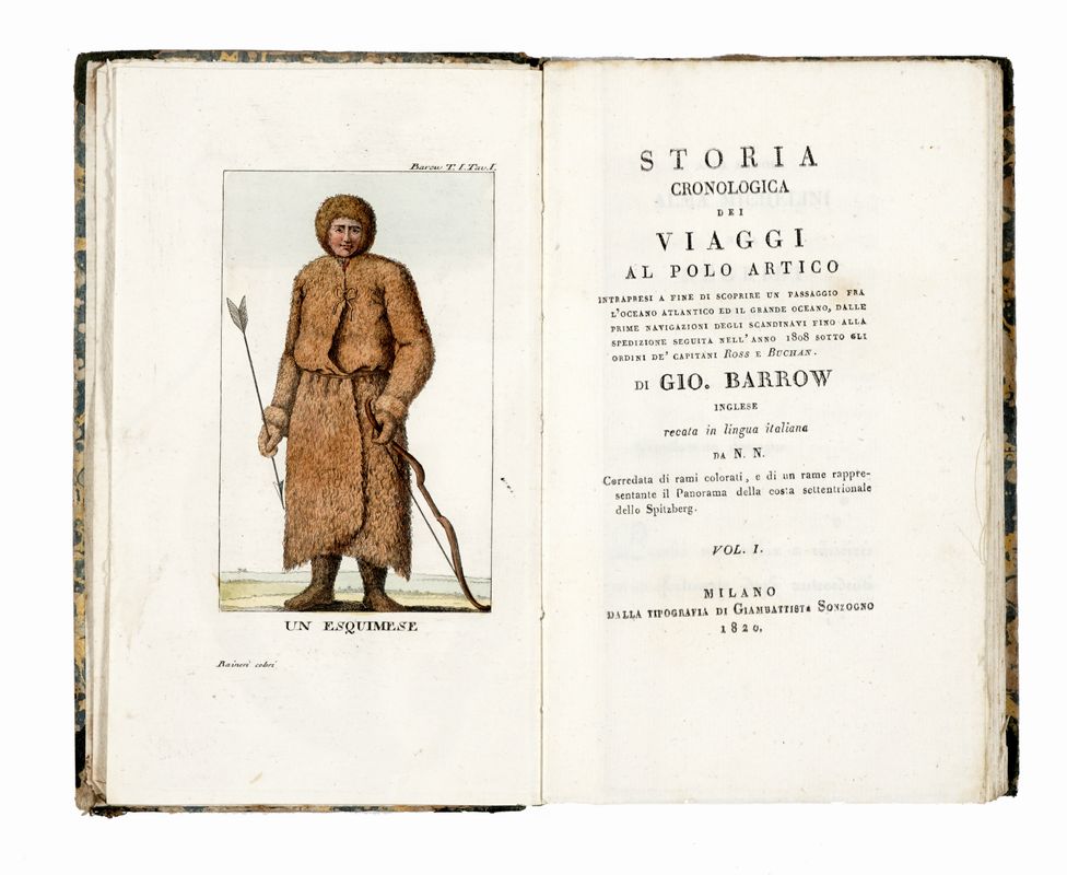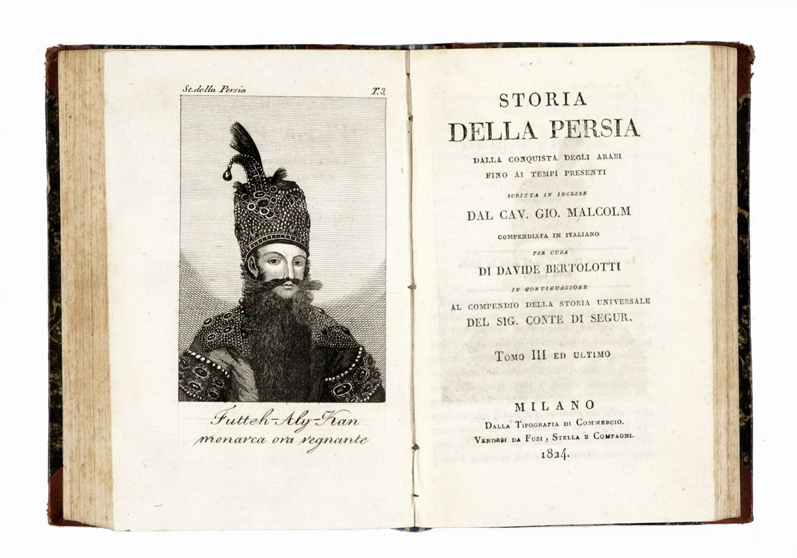 2 volumi in-8° (mm 176x110). Con illustrazioni a colori fuori testo. Buono stato complessivo. Legatura coeva in mezzo marocchino verde con punte e piatti in carta decorata. Titolo in oro su tassello al dorso, decorazioni dorate sempre al dorso. Tracce d'usura a cuffie e unghiature. SI AGGIUNGONO: Soncini Virginio, Storia della Scandinavia ossia Svezia, Danimarca e Norvegia. Tomo I (-III). Milano: presso Ant. Fort. Stella e figli, 1825. 3 parti in 1 volume in-12° (mm 143x92). Bertolotti Davide, Storia della Svizzera. Tomo I (-III). Milano: dalla tipografia di Commercio, 1823. 3 parti in 1 volume in-12° (mm 143x92). Malcolm John, Storia della Persia. Tomo I (-III). Milano: dalla tipografia di Commercio, 1823. 3 parti in 1 volume in-12° (mm 143x92). Bertolotti Davide, Storia di Portogallo... Tomo I (-III). Milano: dalla tipografia di Ranieri Fanfani, 1824.3 parti in 1 volume in-12° (mm 143x92). I volumi aggiunti presentano tavole fuori testo all'interno e legatura coeva omogenea in mezza pelle con punte e piatti in carta marmorizzata, titoli in oro al dorso.