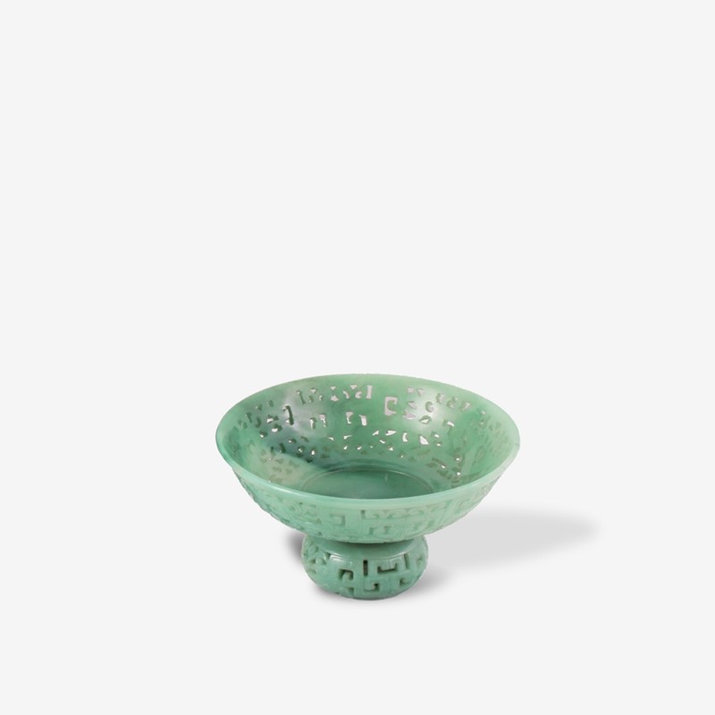 monoblocco in nefrite traforata a disegno orientale, piede bombato e traforato. Dimensioni 6,2x11x11 cm