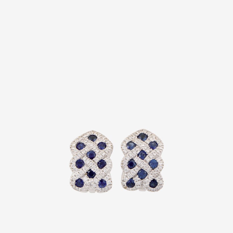 in oro bianco, disegno a intreccio con zaffiri e brillanti, gr. 14,7.