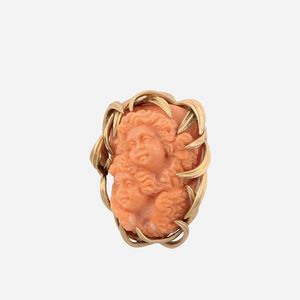 in oro giallo con cammeo in corallo raffigurante due cherubini montata in oro giallo, gr. 34,3.