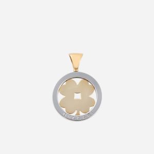 in acciaio e oro giallo, forma rotonda con quadrifoglio traforato centrale, gr. 12,7.