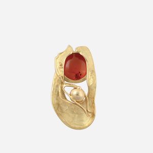 scultura in oro giallo martellato con ambra cabochon centrale (14/99), gr. 23,8.