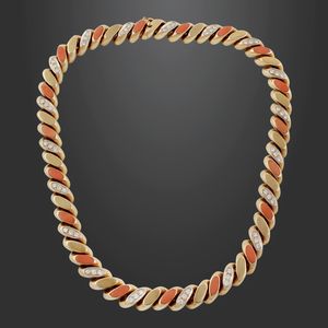girocollo in oro giallo a maglie alternate con elementi in corallo e brillanti. Brillanti del peso complessivo [..]