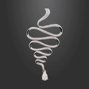 in oro bianco a forma di serpente con diamanti e smalto nero. Diamante a goccia terminale del peso di 0,60 ct [..]