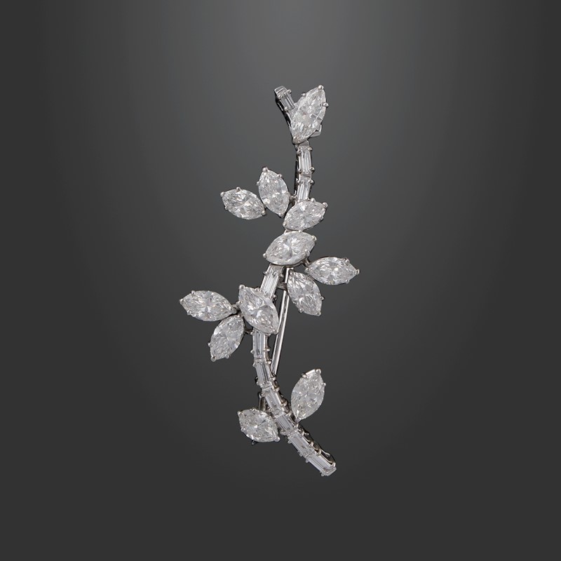 in oro bianco a tralcio fiorito con diamanti navette del peso complessivo di 4,20 ct ca., gr. 7,3.