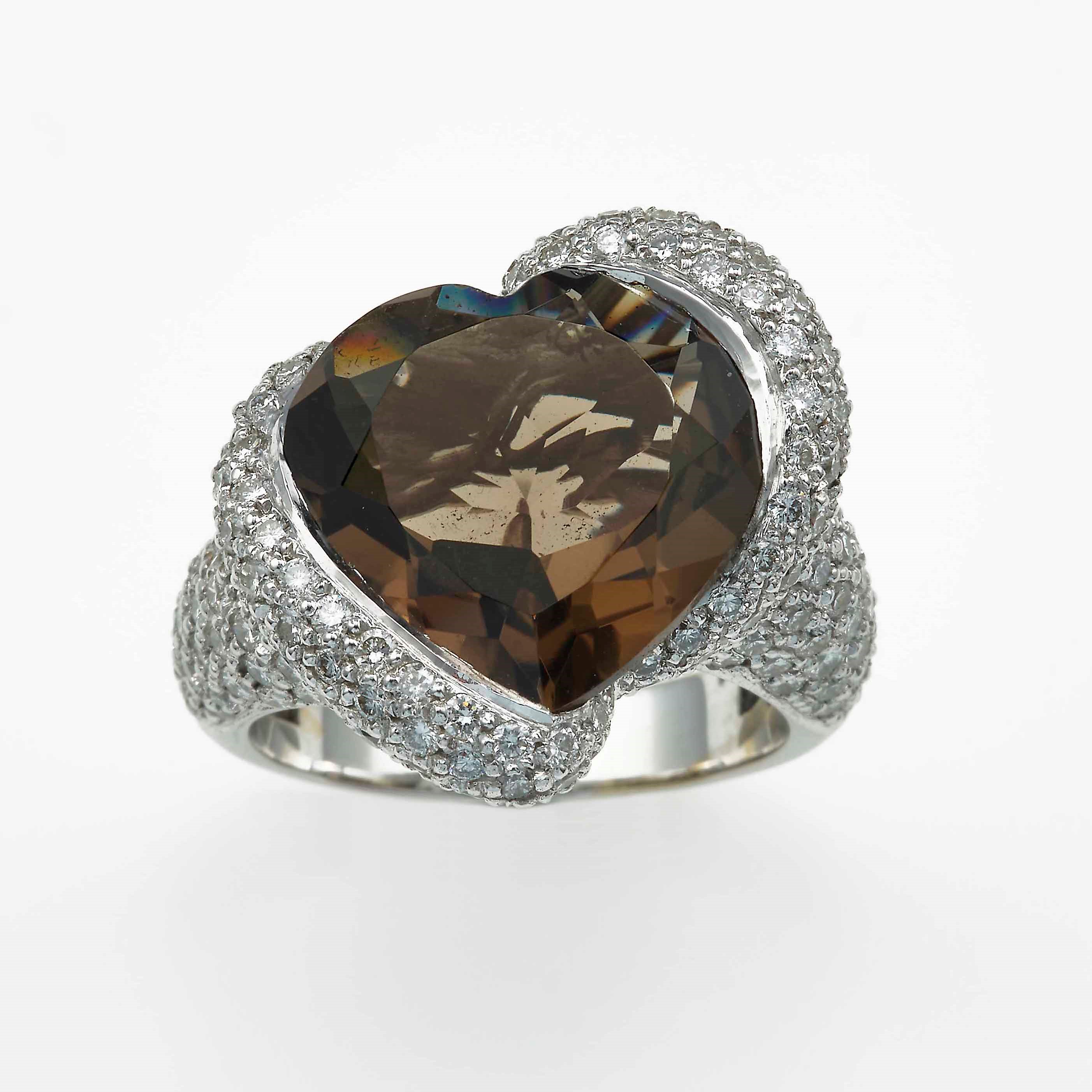 Anello con quarzo smoky taglio cuore e diamanti