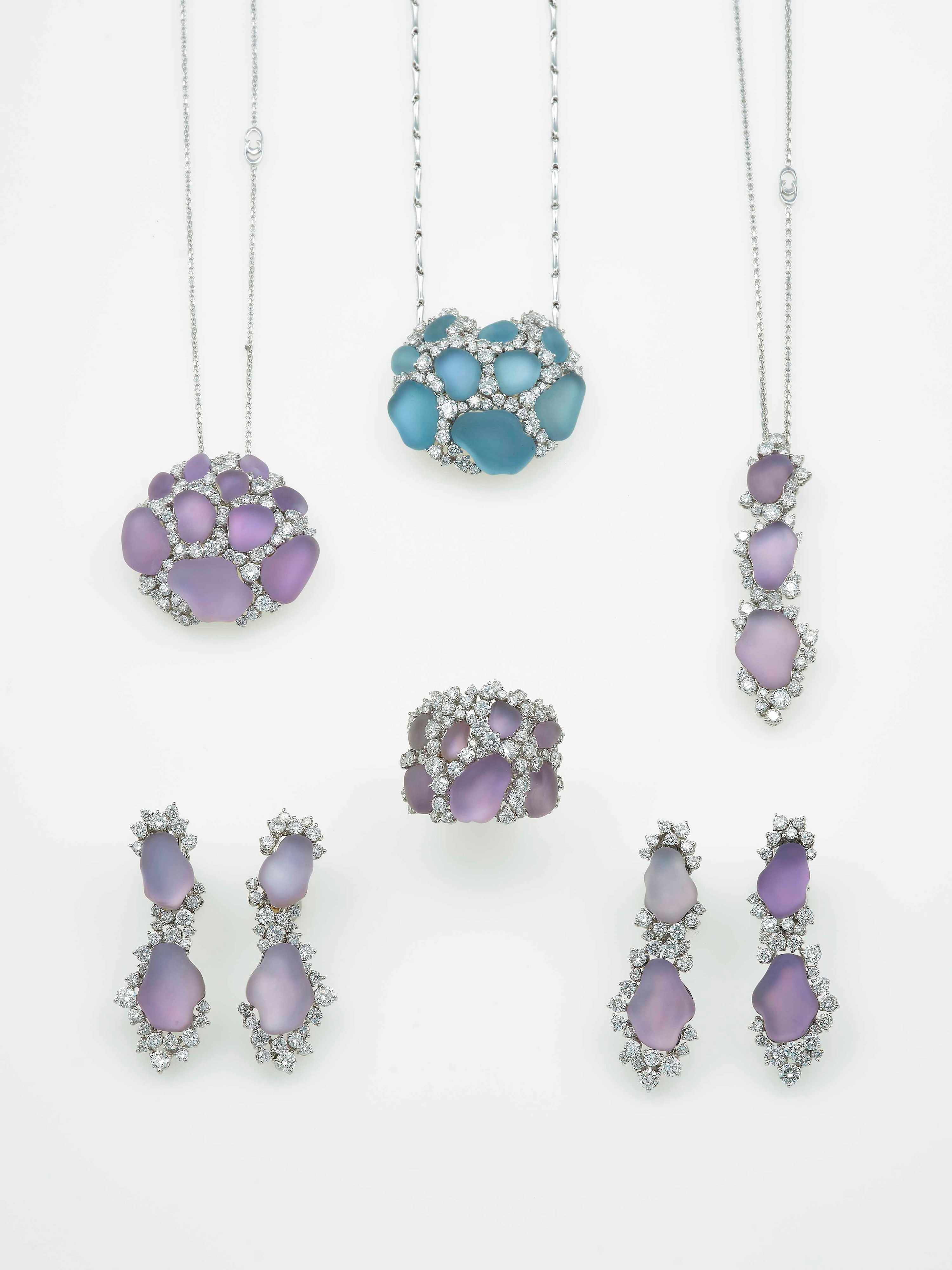 Modello Aurora. Lotto composto da tre pendenti, due paia di orecchini ed un anello [..]