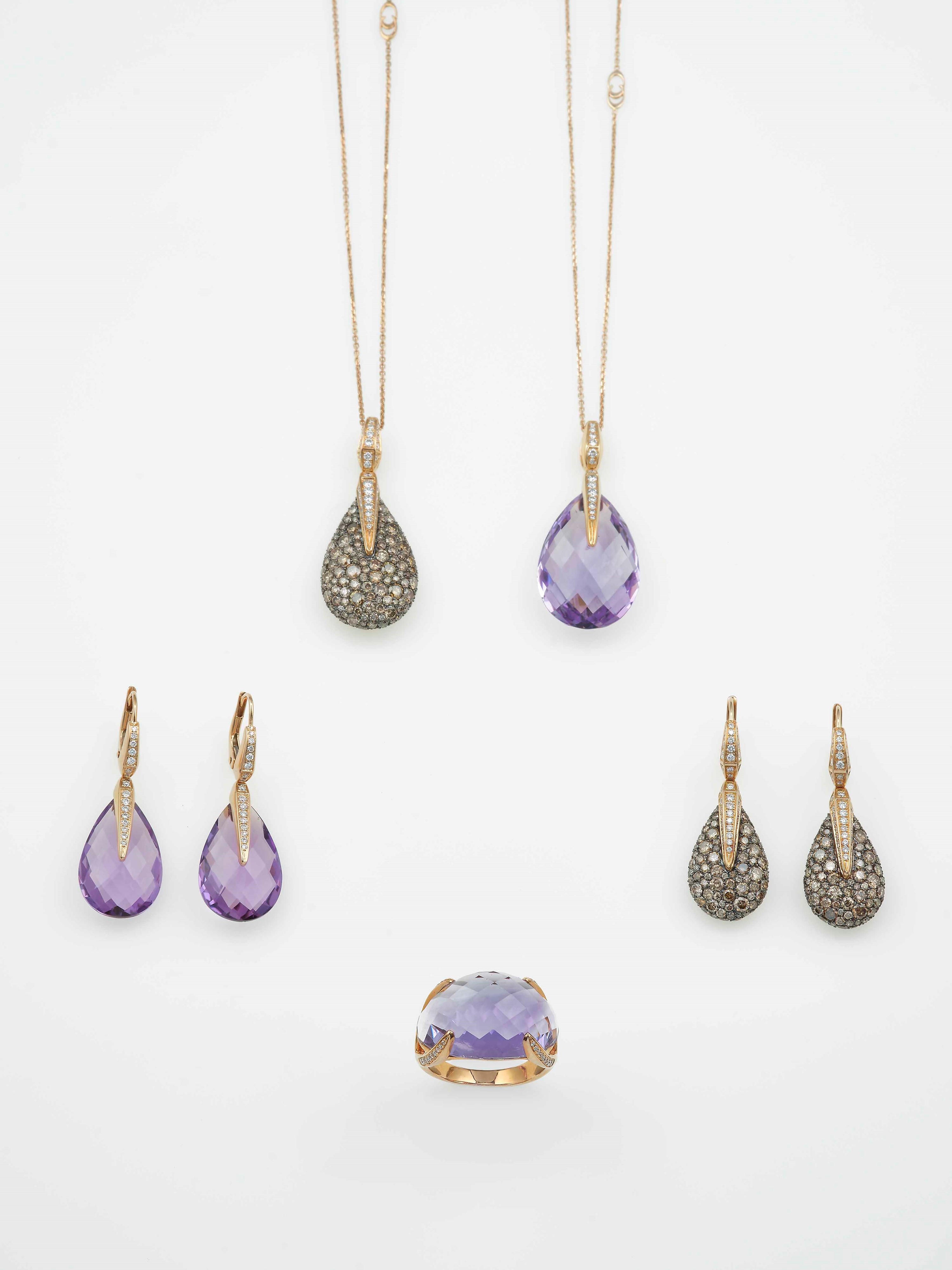 Modello Elisir. Lotto composto da tre paia di orecchini, tre pendenti ed un anello [..]
