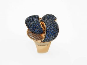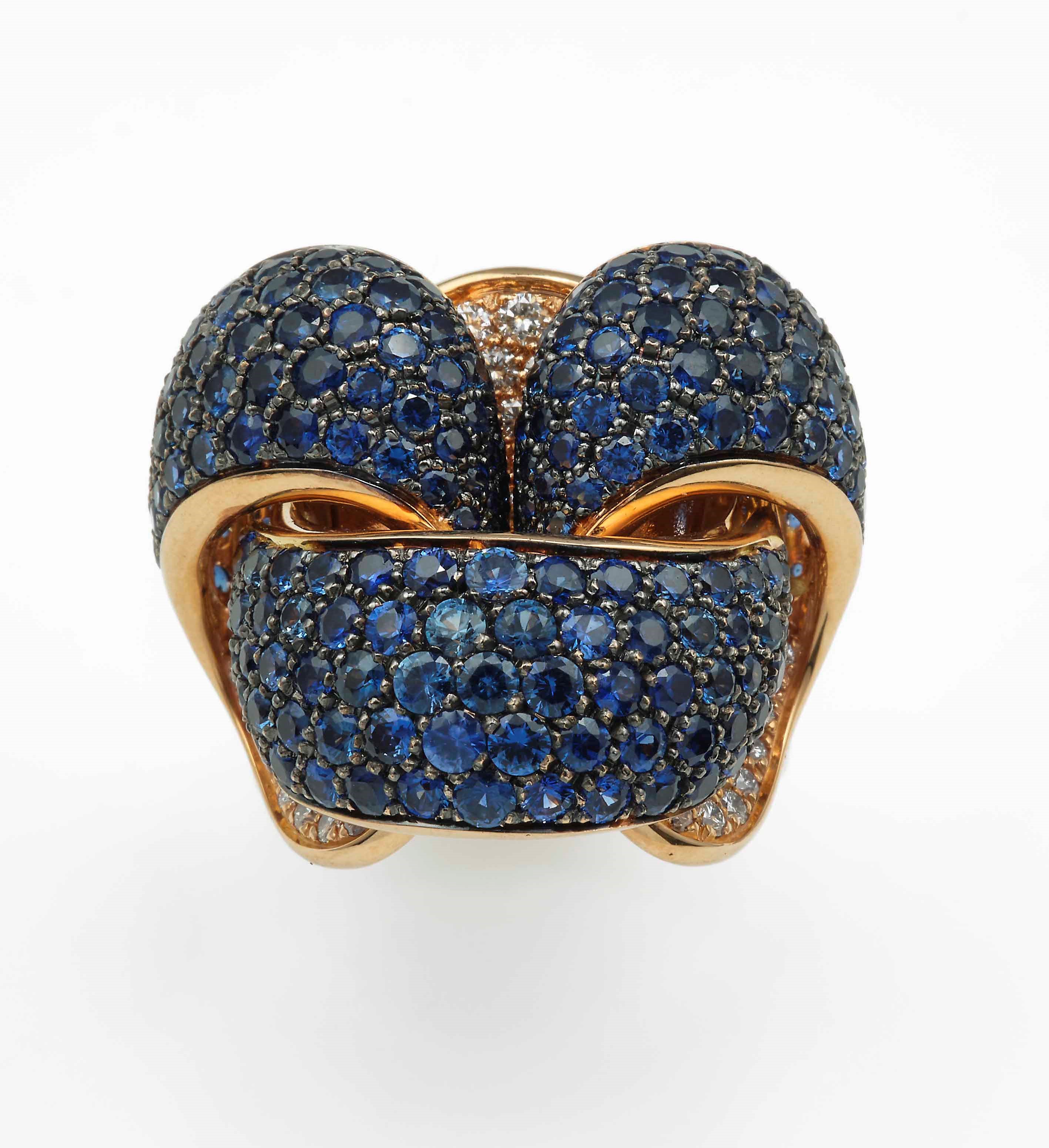 Modello Link Infinity. Anello con zaffiri per ct 9.26 e diamanti per ct 1.12