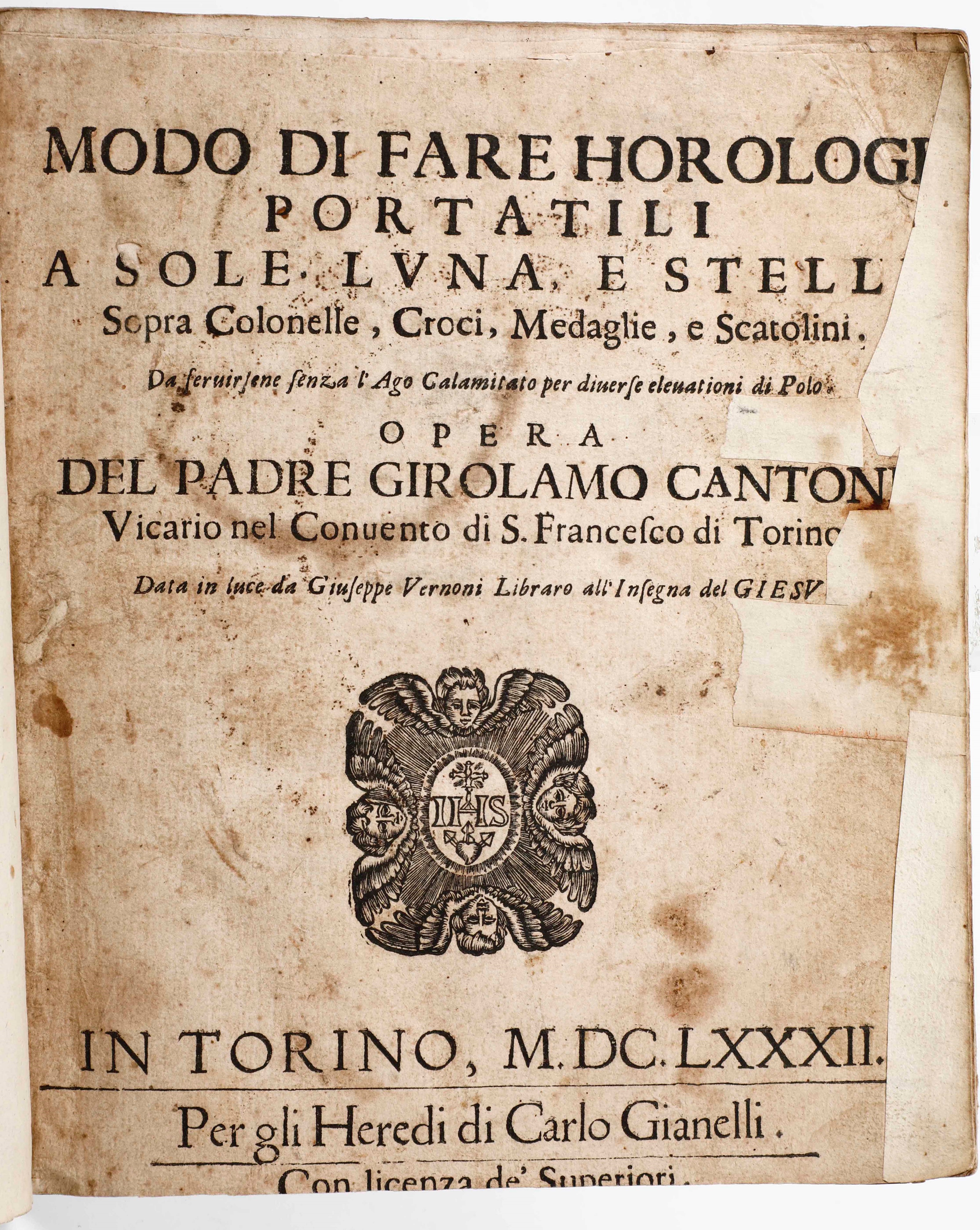 Cantone Girolamo Modo di fare gli horologi portatili... in Torino, per gli heredi [..]