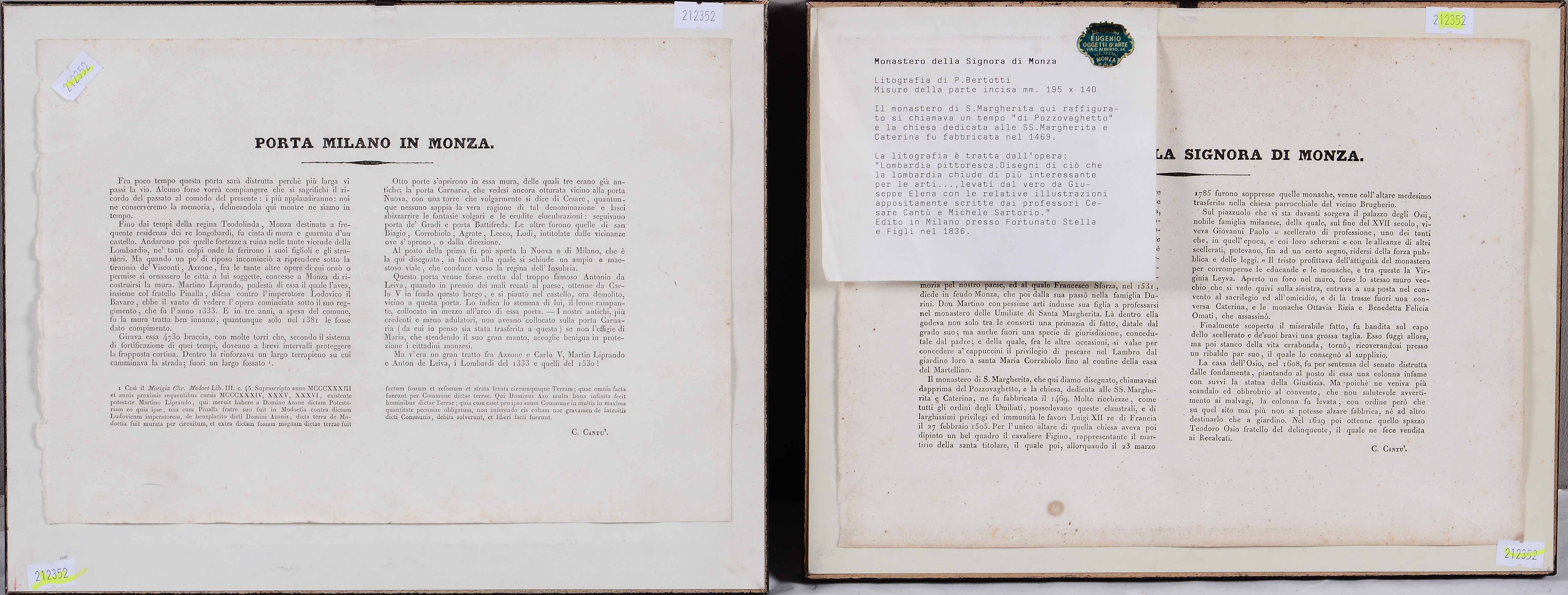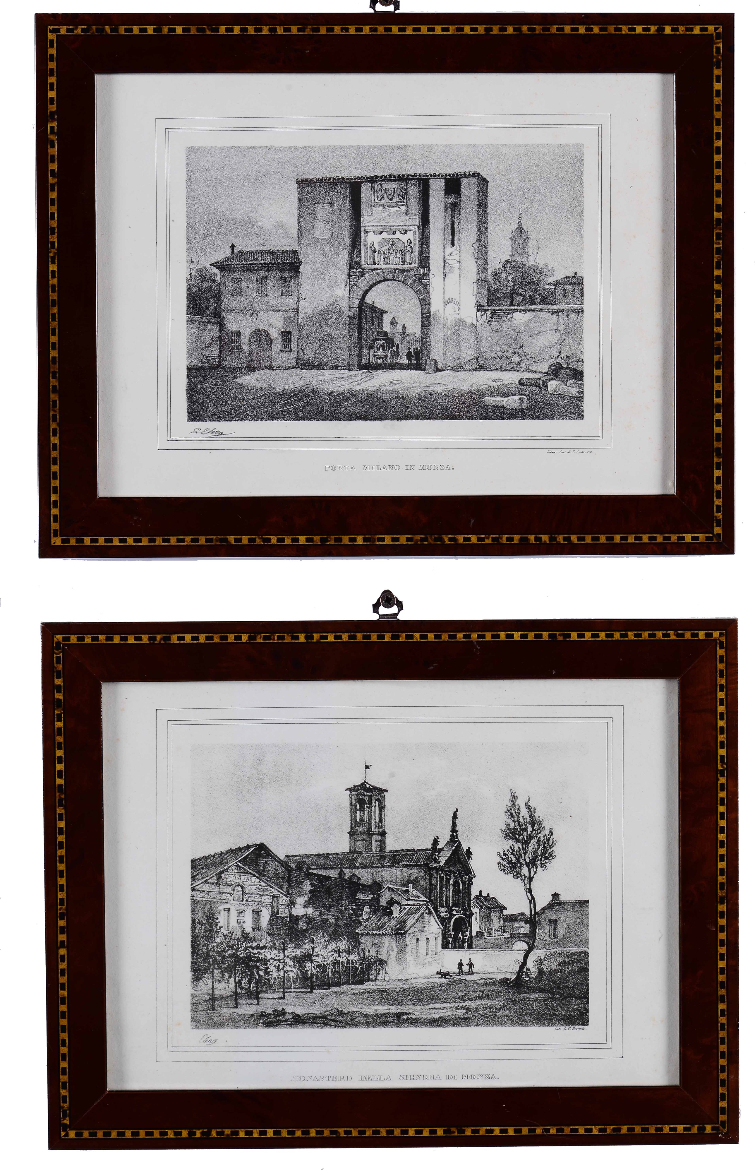 Coppia di stampe Il Monastero della Signora di Monza e Porta Milano in Monza, XIX [..]