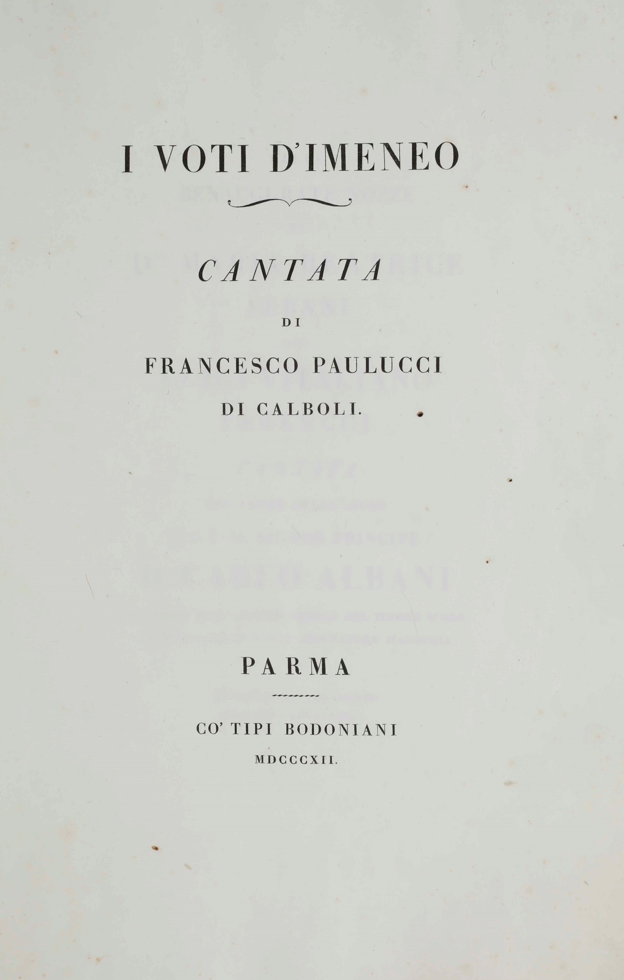 I voti d’Imeneo, Parma, Co’ Tipi Bodoniani, 1812.