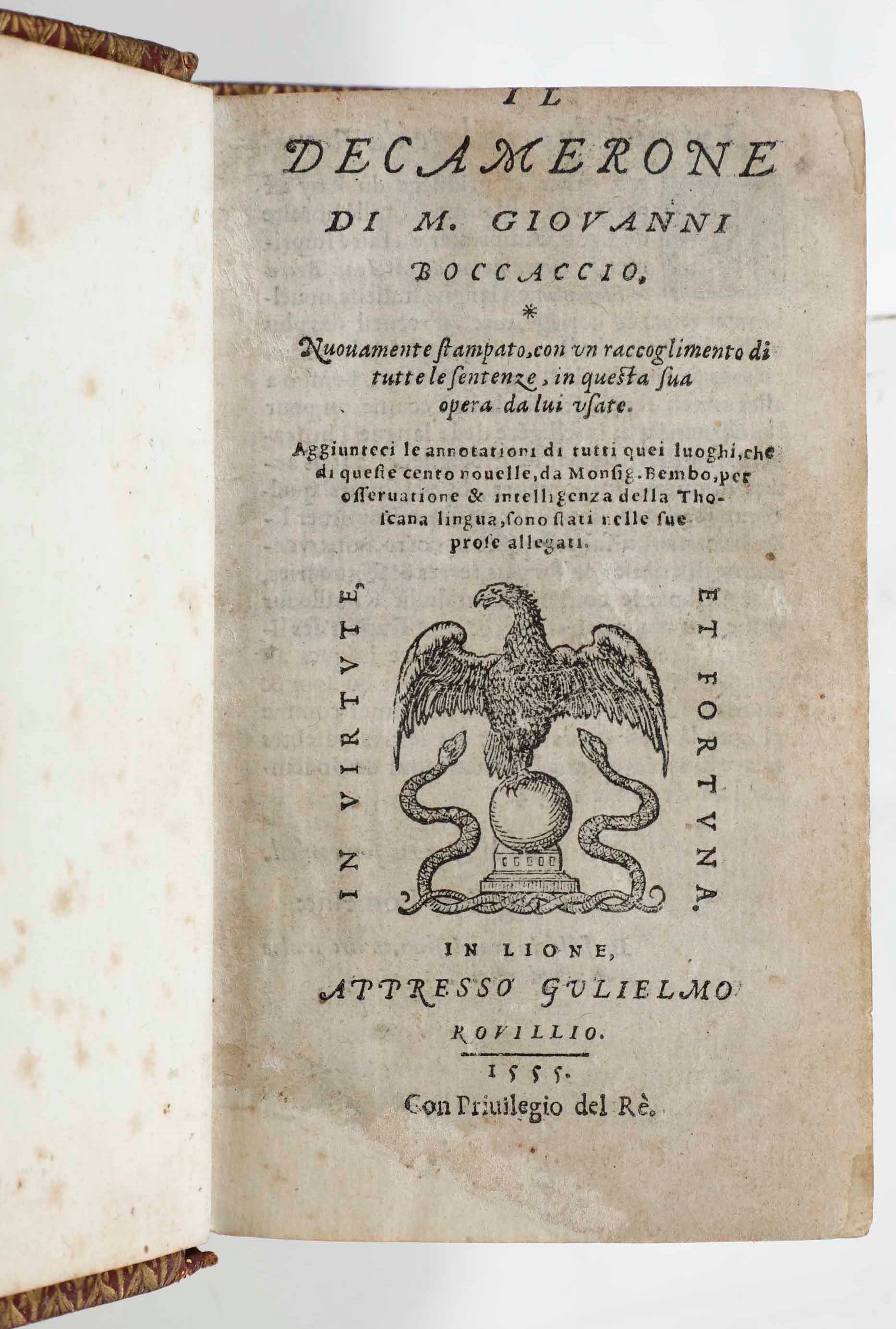 Il Decamerone. Nuovamente stampato...In Lione, appresso Gulielmo Rovillio, 1555.