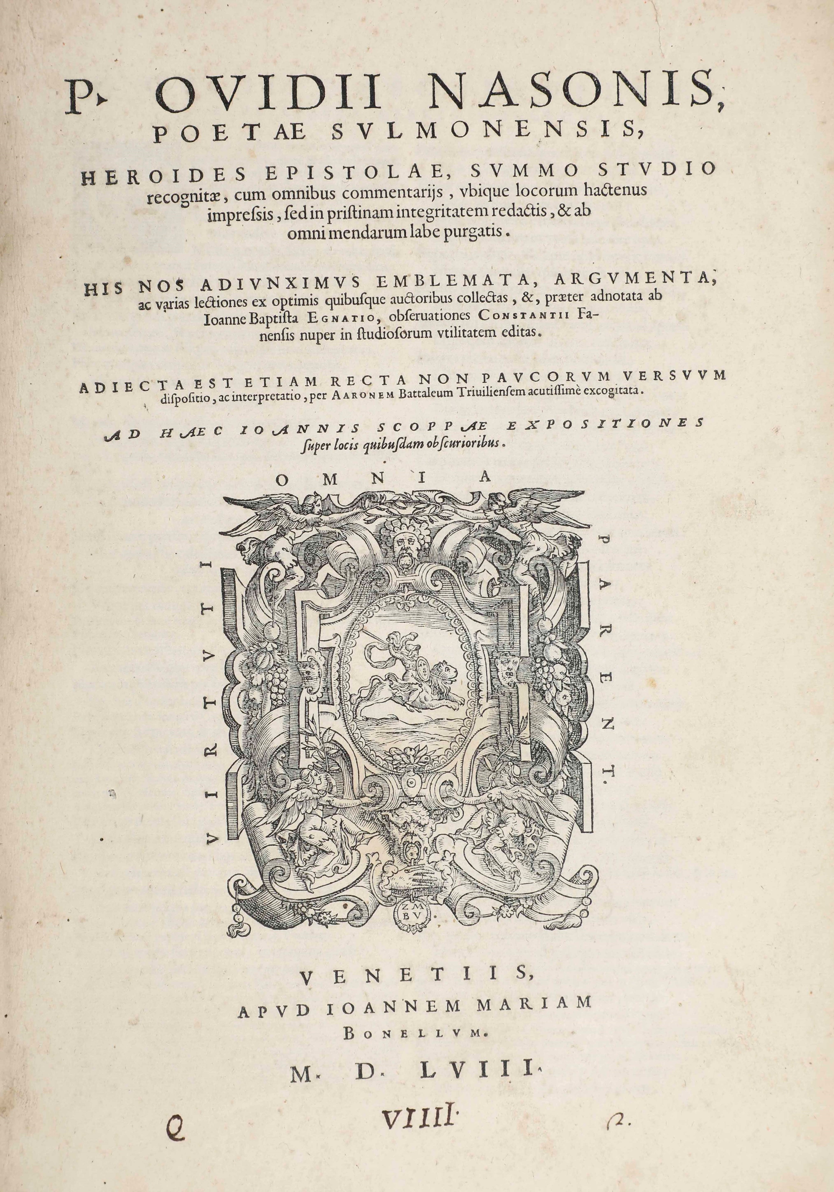 P. Ovidii Nasonis, poetae sulmonensis, heroides epistolae, summo studio...Venezia, [..]