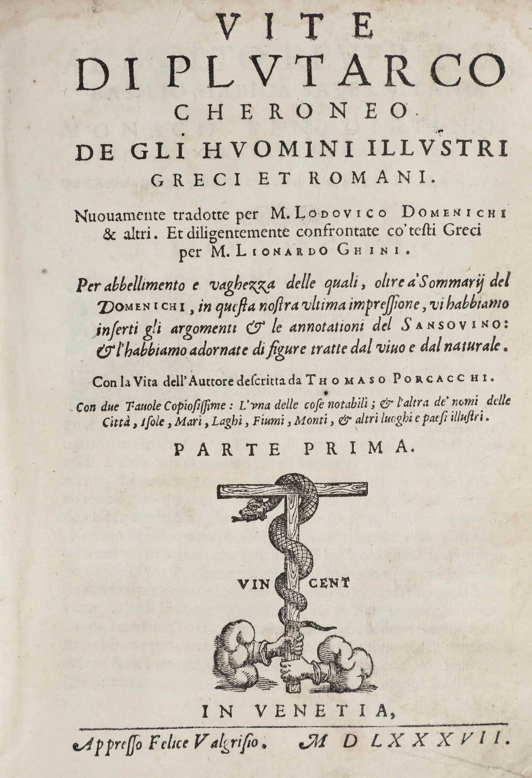 Vite degli uomini illustri greci e romani. Nuovamente tradotte per M. Ludovico Domenichi, [..]