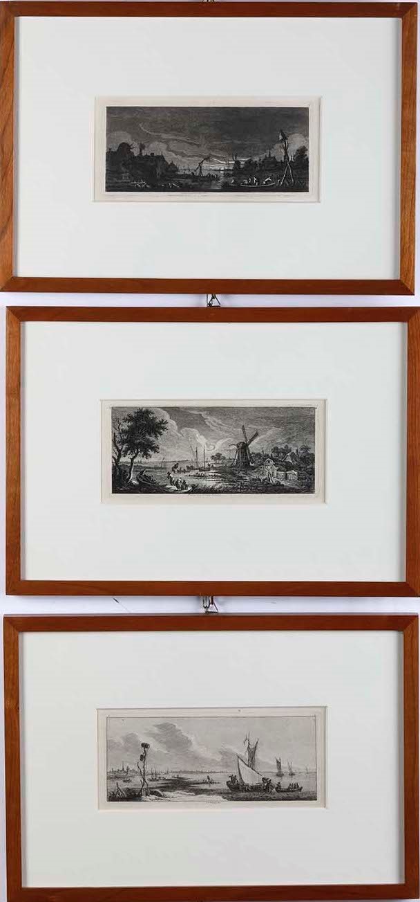 Weirotter Franz Edmund Sei differenti vedute dal vero: Mulino e villaggio / Pescatori [..]