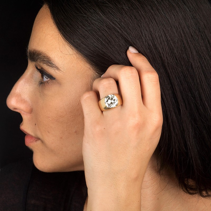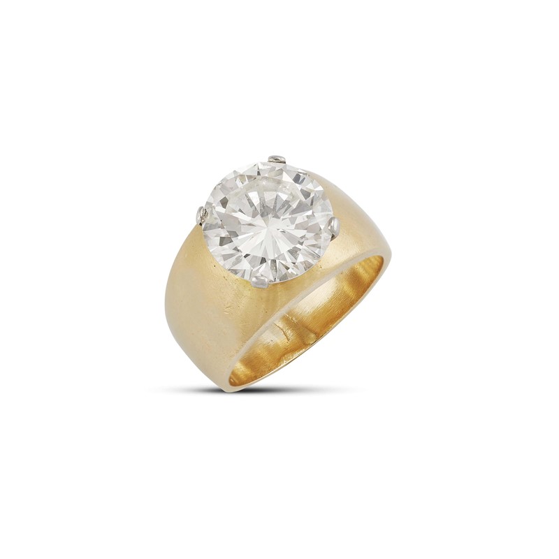in oro giallo 18kt, con diamante taglio brillante (smontato) di ct 6.63, colore N/O, purezza Vvs2, punzone 750, mis. 62, gr. 16. Corredato di certificato IGN del 18/10/2022 attestante le caratteristiche.