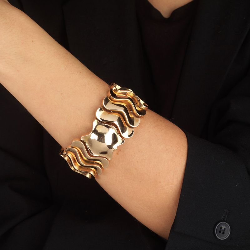 BRACCIALE AD AMPIA FASCIA CON OROLOGIO A SCOMPARSA