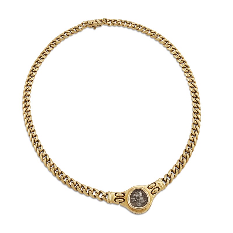 BULGARI CURB CHAIN NECKLACE IN 18KT YELLOW GOLD WITH A COIN