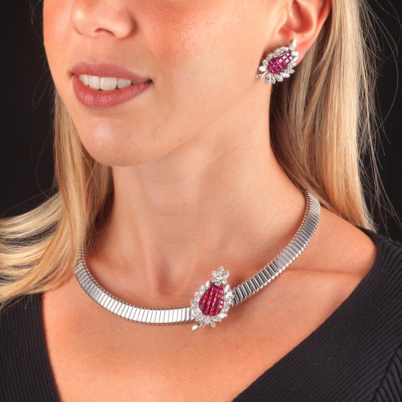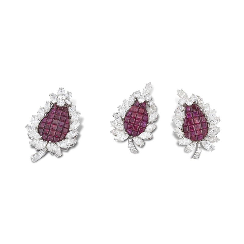 BULGARI FLORAL MOTIF RUBY AND DIAMOND PARURE IN 18KT WHITE GOLD